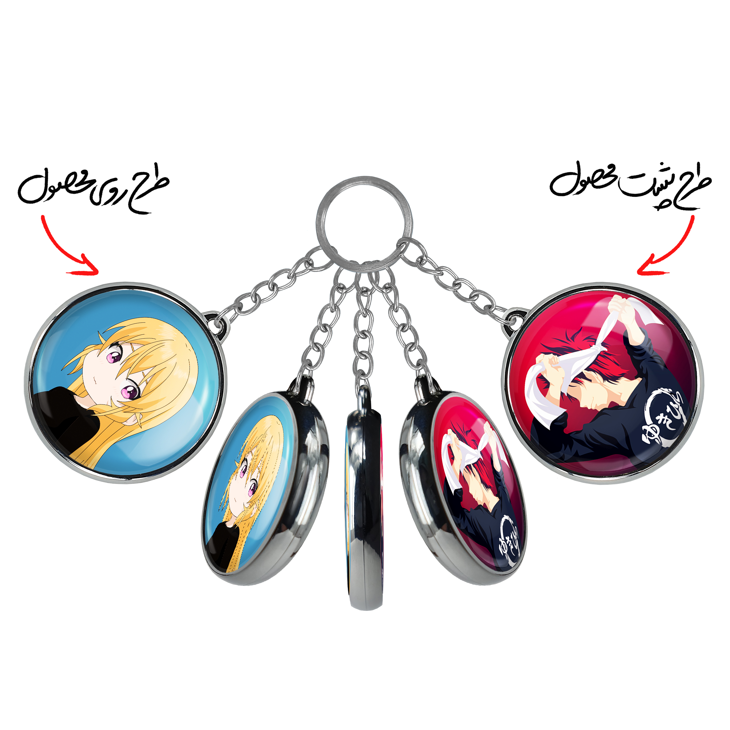 جاکلیدی دوطرفه ارینا انیمه جنگ غذاها Food Wars خندالو محصولی کاربردی و جدید است که در هر دو سمت محصول، تصویری متفاوت اما از یک موضوع چاپ شده و تفاوت اصلی آن با جاکلیدی های یک طرفه در همین است که هر دو سمت پشت و روی جاکلیدی، طرحی دیدنی و جذاب دارد.