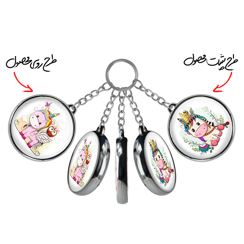 جاکلیدی دوطرفه اسب تک شاخ یونیکورن خندالو محصولی کاربردی و جدید است که در هر دو سمت محصول، تصویری متفاوت اما از یک موضوع چاپ شده و تفاوت اصلی آن با جاکلیدی های یک طرفه در همین است که هر دو سمت پشت و روی جاکلیدی، طرحی دیدنی و جذاب دارد. همچنین رینگ بکار برده شده برای دور طرح ها آبکاری کروم درجه یک و رنگ ثابت است و برخلاف سایر محصولات مشابه، از رنگ های متفرقه و یا سفید استفاده نشده، که این مهم، زیبایی محصول نهایی را چند برابر کرده است. جاکلیدی های دوطرفه اسب تک شاخ یونیکورن با استفاده از روکش سلفون براق ضدخش تولید شده که خاصیت ضدخش بودن آن عمر مفید استفاده از جاکلیدی ها را افزایش میدهد. چاپ جاکلیدی ها با دستگاه های استاندارد و با بهترین سطح کیفیت صورت گرفته و طرح با شفافیتی مثال زدنی و با سلفون چسبی تولید شده است که باعث شده محصول نهایی بدون شکست نور دیده شود. همچنین بسته بندی جذاب و مینیمال جاکلیدی دوطرفه اسب تک شاخ یونیکورن ، آنها را محصولی مناسب هدیه کرده است. زنجیر و حلقه بکار برده شده در جاکلیدی خندالو از نوع حلقه ضخیم و محکم بوده و حین استفاده آسیب نمی بیند.