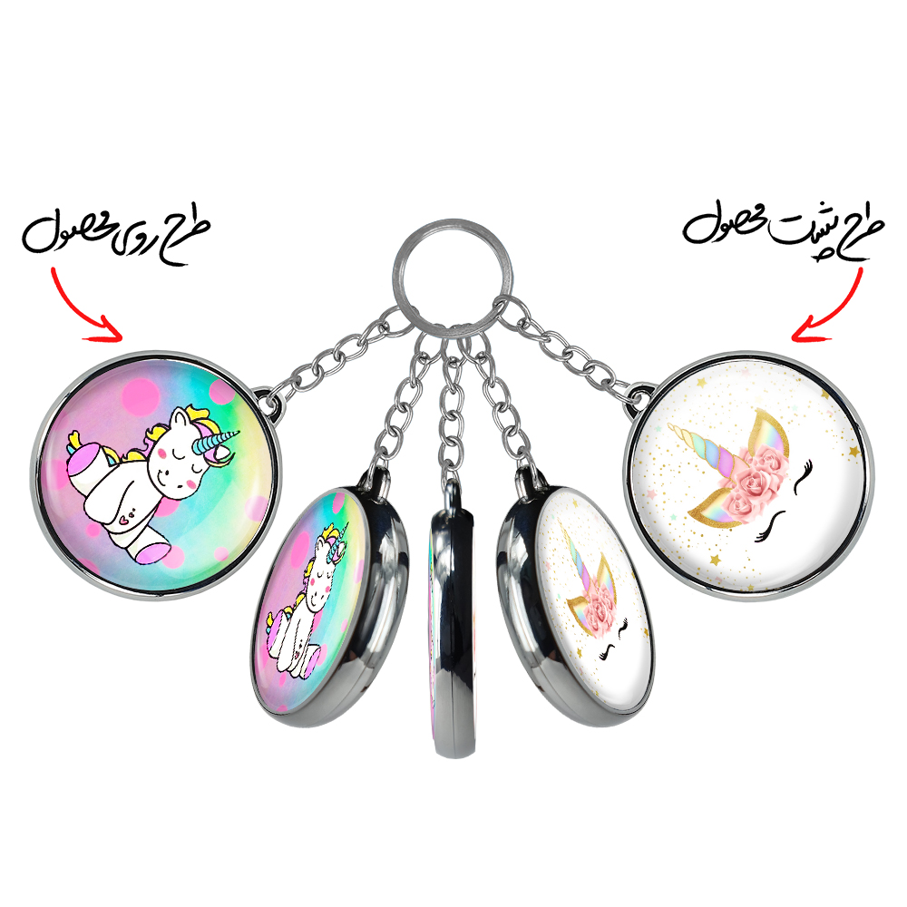 جاکلیدی دوطرفه اسب تک شاخ یونیکورن خندالو محصولی کاربردی و جدید است که در هر دو سمت محصول، تصویری متفاوت اما از یک موضوع چاپ شده و تفاوت اصلی آن با جاکلیدی های یک طرفه در همین است که هر دو سمت پشت و روی جاکلیدی، طرحی دیدنی و جذاب دارد. همچنین رینگ بکار برده شده برای دور طرح ها آبکاری کروم درجه یک و رنگ ثابت است و برخلاف سایر محصولات مشابه، از رنگ های متفرقه و یا سفید استفاده نشده، که این مهم، زیبایی محصول نهایی را چند برابر کرده است. جاکلیدی های دوطرفه اسب تک شاخ یونیکورن با استفاده از روکش سلفون براق ضدخش تولید شده که خاصیت ضدخش بودن آن عمر مفید استفاده از جاکلیدی ها را افزایش میدهد. چاپ جاکلیدی ها با دستگاه های استاندارد و با بهترین سطح کیفیت صورت گرفته و طرح با شفافیتی مثال زدنی و با سلفون چسبی تولید شده است که باعث شده محصول نهایی بدون شکست نور دیده شود. همچنین بسته بندی جذاب و مینیمال جاکلیدی دوطرفه اسب تک شاخ یونیکورن ، آنها را محصولی مناسب هدیه کرده است. زنجیر و حلقه بکار برده شده در جاکلیدی خندالو از نوع حلقه ضخیم و محکم بوده و حین استفاده آسیب نمی بیند.