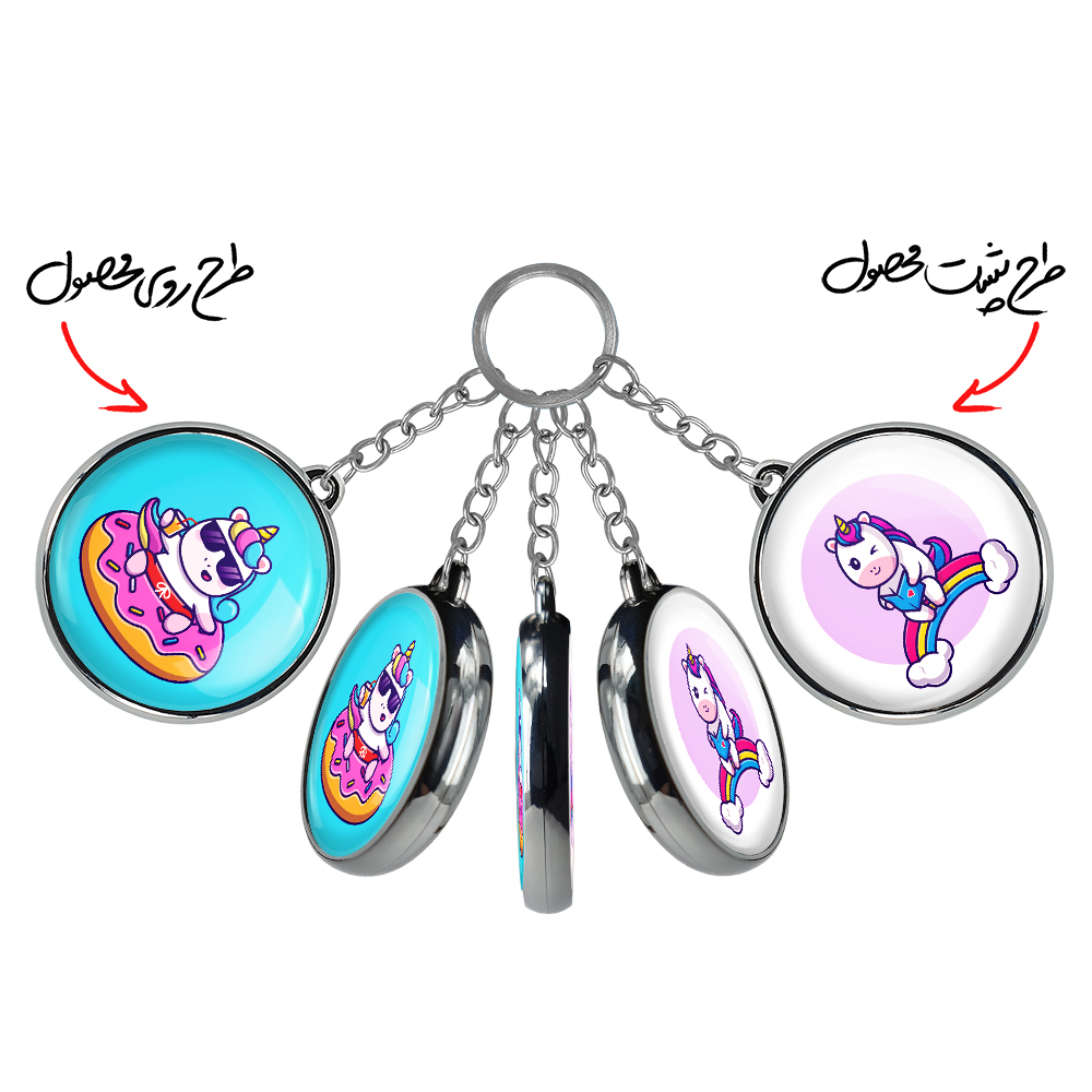 جاکلیدی دوطرفه اسب تک شاخ یونیکورن خندالو محصولی کاربردی و جدید است که در هر دو سمت محصول، تصویری متفاوت اما از یک موضوع چاپ شده و تفاوت اصلی آن با جاکلیدی های یک طرفه در همین است که هر دو سمت پشت و روی جاکلیدی، طرحی دیدنی و جذاب دارد. همچنین رینگ بکار برده شده برای دور طرح ها آبکاری کروم درجه یک و رنگ ثابت است و برخلاف سایر محصولات مشابه، از رنگ های متفرقه و یا سفید استفاده نشده، که این مهم، زیبایی محصول نهایی را چند برابر کرده است. جاکلیدی های دوطرفه اسب تک شاخ یونیکورن با استفاده از روکش سلفون براق ضدخش تولید شده که خاصیت ضدخش بودن آن عمر مفید استفاده از جاکلیدی ها را افزایش میدهد. چاپ جاکلیدی ها با دستگاه های استاندارد و با بهترین سطح کیفیت صورت گرفته و طرح با شفافیتی مثال زدنی و با سلفون چسبی تولید شده است که باعث شده محصول نهایی بدون شکست نور دیده شود. همچنین بسته بندی جذاب و مینیمال جاکلیدی دوطرفه اسب تک شاخ یونیکورن ، آنها را محصولی مناسب هدیه کرده است. زنجیر و حلقه بکار برده شده در جاکلیدی خندالو از نوع حلقه ضخیم و محکم بوده و حین استفاده آسیب نمی بیند.