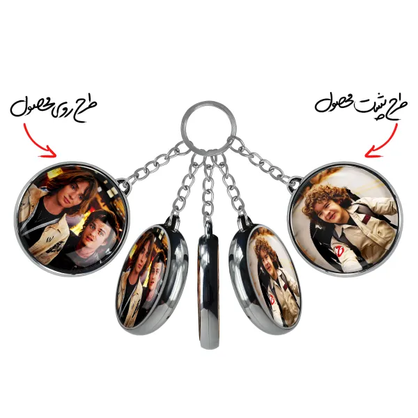 جاکلیدی دوطرفه استیو و رابین سریال استرنجر تینگز Stranger Things خندالو محصولی کاربردی و جدید است که در هر دو سمت محصول، تصویری متفاوت اما از یک موضوع چاپ شده و تفاوت اصلی آن با جاکلیدی های یک طرفه در همین است که هر دو سمت پشت و روی جاکلیدی، طرحی دیدنی و جذاب دارد. همچنین رینگ بکار برده شده برای دور طرح ها آبکاری کروم درجه یک و رنگ ثابت است و برخلاف سایر محصولات مشابه، از رنگ های متفرقه و یا سفید استفاده نشده، که این مهم، زیبایی محصول نهایی را چند برابر کرده است. جاکلیدی های دوطرفه استیو و رابین سریال استرنجر تینگز Stranger Things با استفاده از روکش سلفون براق ضدخش تولید شده که خاصیت ضدخش بودن آن عمر مفید استفاده از جاکلیدی ها را افزایش میدهد. چاپ جاکلیدی ها با دستگاه های استاندارد و با بهترین سطح کیفیت صورت گرفته و طرح با شفافیتی مثال زدنی و با سلفون چسبی تولید شده است که باعث شده محصول نهایی بدون شکست نور دیده شود. همچنین بسته بندی جذاب و مینیمال جاکلیدی دوطرفه استیو و رابین سریال استرنجر تینگز Stranger Things ، آنها را محصولی مناسب هدیه کرده است. زنجیر و حلقه بکار برده شده در جاکلیدی خندالو از نوع حلقه ضخیم و محکم بوده و حین استفاده آسیب نمی بیند.