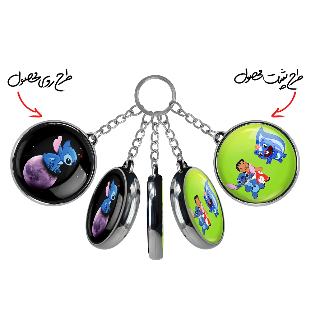 جاکلیدی دوطرفه استیچ (Stitch) خندالو محصولی کاربردی و جدید است که در هر دو سمت محصول، تصویری متفاوت اما از یک موضوع چاپ شده و تفاوت اصلی آن با جاکلیدی های یک طرفه در همین است که هر دو سمت پشت و روی جاکلیدی، طرحی دیدنی و جذاب دارد. همچنین رینگ بکار برده شده برای دور طرح ها آبکاری کروم درجه یک و رنگ ثابت است و برخلاف سایر محصولات مشابه، از رنگ های متفرقه و یا سفید استفاده نشده، که این مهم، زیبایی محصول نهایی را چند برابر کرده است. جاکلیدی های دوطرفه استیچ (Stitch) با استفاده از روکش سلفون براق ضدخش تولید شده که خاصیت ضدخش بودن آن عمر مفید استفاده از جاکلیدی ها را افزایش میدهد. چاپ جاکلیدی ها با دستگاه های استاندارد و با بهترین سطح کیفیت صورت گرفته و طرح با شفافیتی مثال زدنی و با سلفون چسبی تولید شده است که باعث شده محصول نهایی بدون شکست نور دیده شود. همچنین بسته بندی جذاب و مینیمال جاکلیدی دوطرفه استیچ (Stitch)، آنها را محصولی مناسب هدیه کرده است. زنجیر و حلقه بکار برده شده در جاکلیدی خندالو از نوع حلقه ضخیم و محکم بوده و حین استفاده آسیب نمی بیند.