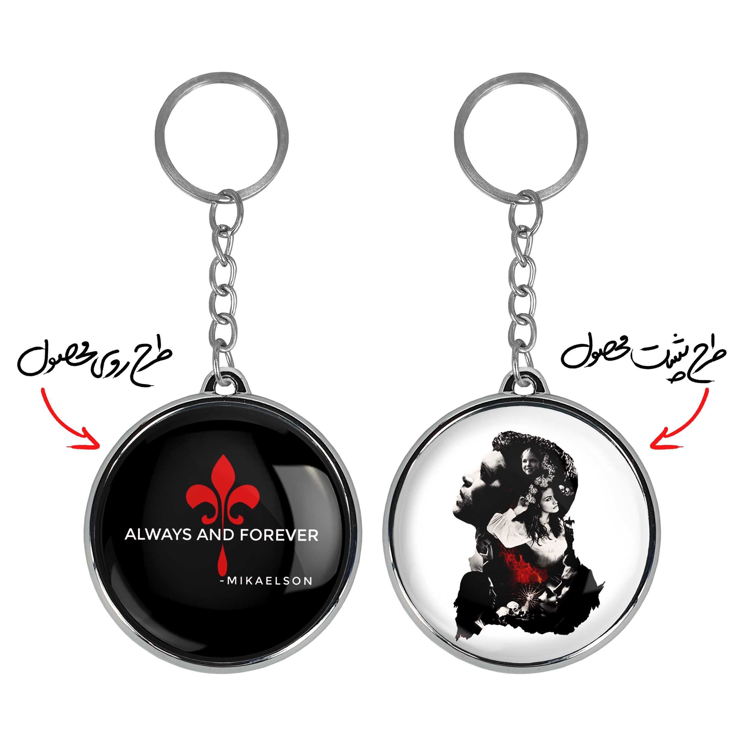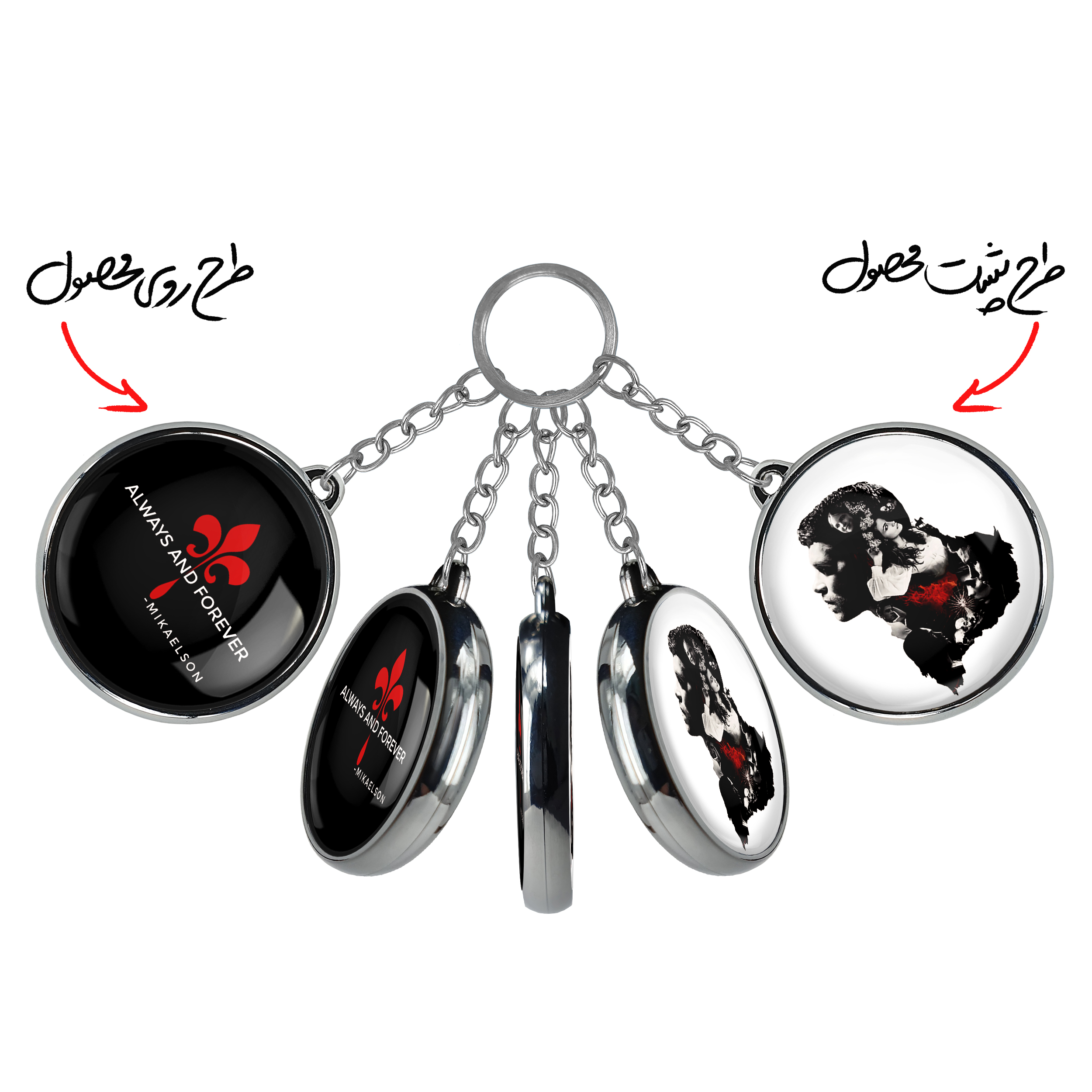 جاکلیدی دوطرفه اصیل ها The Originals خندالو محصولی کاربردی و جدید است که در هر دو سمت محصول، تصویری متفاوت اما از یک موضوع چاپ شده و تفاوت اصلی آن با جاکلیدی های یک طرفه در همین است که هر دو سمت پشت و روی جاکلیدی، طرحی دیدنی و جذاب دارد. همچنین رینگ بکار برده شده برای دور طرح ها آبکاری کروم درجه یک و رنگ ثابت است و برخلاف سایر محصولات مشابه، از رنگ های متفرقه و یا سفید استفاده نشده، که این مهم، زیبایی محصول نهایی را چند برابر کرده است. جاکلیدی های دوطرفه اصیل ها The Originals با استفاده از روکش سلفون براق ضدخش تولید شده که خاصیت ضدخش بودن آن عمر مفید استفاده از جاکلیدی ها را افزایش میدهد. چاپ جاکلیدی ها با دستگاه های استاندارد و با بهترین سطح کیفیت صورت گرفته و طرح با شفافیتی مثال زدنی و با سلفون چسبی تولید شده است که باعث شده محصول نهایی بدون شکست نور دیده شود. همچنین بسته بندی جذاب و مینیمال جاکلیدی دوطرفه اصیل ها The Originals ، آنها را محصولی مناسب هدیه کرده است. زنجیر و حلقه بکار برده شده در جاکلیدی خندالو از نوع حلقه ضخیم و محکم بوده و حین استفاده آسیب نمی بیند.