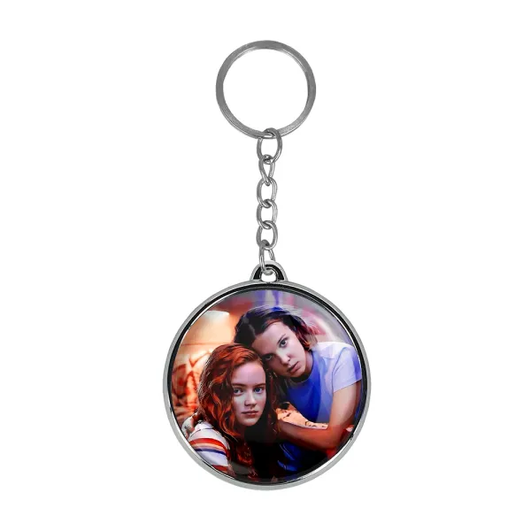 جاکلیدی دوطرفه الون و مکس سریال استرنجر تینگز Stranger Things خندالو محصولی کاربردی و جدید است که در هر دو سمت محصول، تصویری متفاوت اما از یک موضوع چاپ شده و تفاوت اصلی آن با جاکلیدی های یک طرفه در همین است که هر دو سمت پشت و روی جاکلیدی، طرحی دیدنی و جذاب دارد. همچنین رینگ بکار برده شده برای دور طرح ها آبکاری کروم درجه یک و رنگ ثابت است و برخلاف سایر محصولات مشابه، از رنگ های متفرقه و یا سفید استفاده نشده، که این مهم، زیبایی محصول نهایی را چند برابر کرده است. جاکلیدی های دوطرفه الون و مکس سریال استرنجر تینگز Stranger Things با استفاده از روکش سلفون براق ضدخش تولید شده که خاصیت ضدخش بودن آن عمر مفید استفاده از جاکلیدی ها را افزایش میدهد. چاپ جاکلیدی ها با دستگاه های استاندارد و با بهترین سطح کیفیت صورت گرفته و طرح با شفافیتی مثال زدنی و با سلفون چسبی تولید شده است که باعث شده محصول نهایی بدون شکست نور دیده شود. همچنین بسته بندی جذاب و مینیمال جاکلیدی دوطرفه الون و مکس سریال استرنجر تینگز Stranger Things ، آنها را محصولی مناسب هدیه کرده است. زنجیر و حلقه بکار برده شده در جاکلیدی خندالو از نوع حلقه ضخیم و محکم بوده و حین استفاده آسیب نمی بیند.