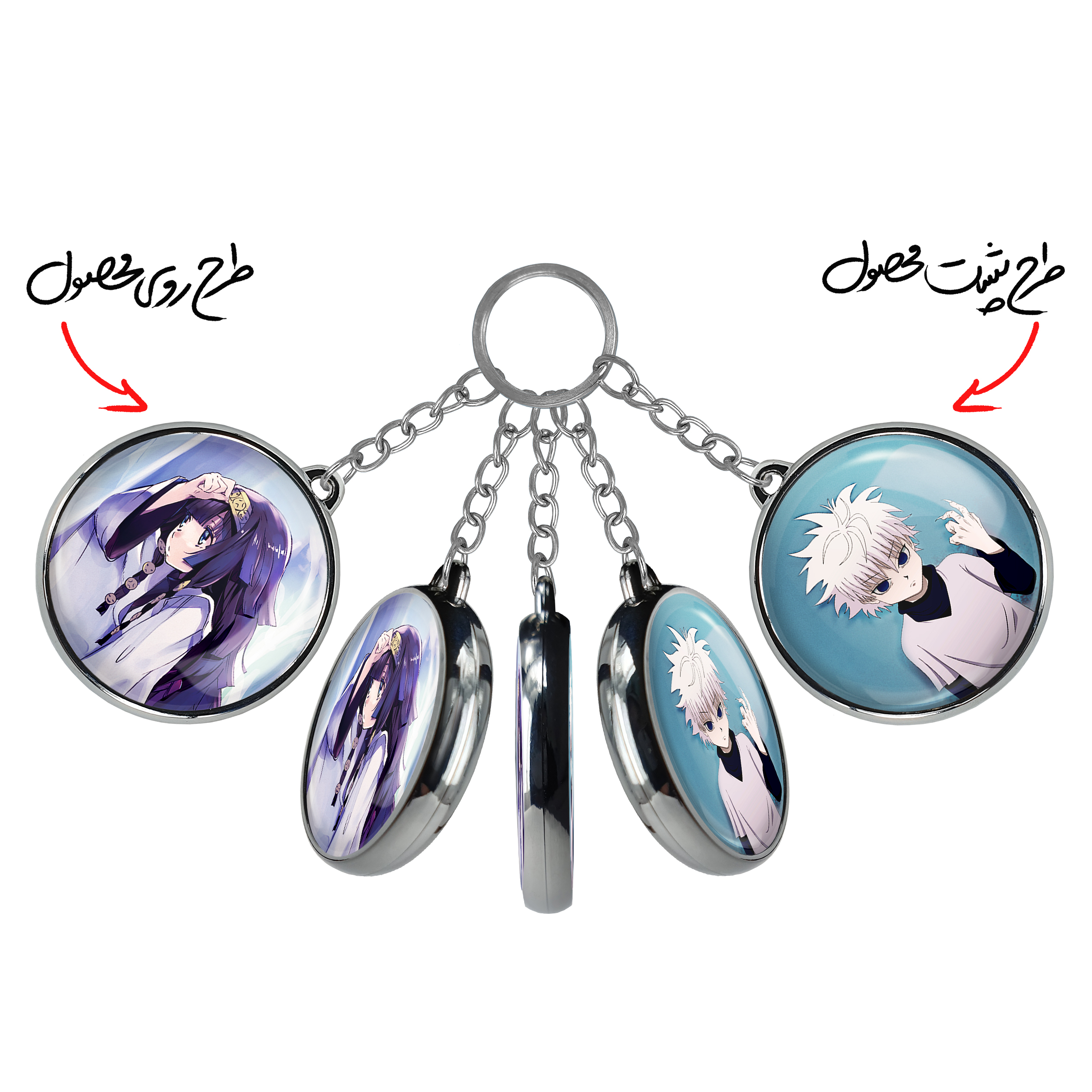 جاکلیدی دوطرفه الوکا زولدییک انیمه هانتر ایکس هانتر Hunter × Hunter خندالو محصولی کاربردی و جدید است که در هر دو سمت محصول، تصویری متفاوت اما از یک موضوع چاپ شده و تفاوت اصلی آن با جاکلیدی های یک طرفه در همین است که هر دو سمت پشت و روی جاکلیدی، طرحی دیدنی و جذاب دارد. همچنین رینگ بکار برده شده برای دور طرح ها آبکاری کروم درجه یک و رنگ ثابت است و برخلاف سایر محصولات مشابه، از رنگ های متفرقه و یا سفید استفاده نشده، که این مهم، زیبایی محصول نهایی را چند برابر کرده است. جاکلیدی های دوطرفه الوکا زولدییک انیمه هانتر ایکس هانتر Hunter × Hunter با استفاده از روکش سلفون براق ضدخش تولید شده که خاصیت ضدخش بودن آن عمر مفید استفاده از جاکلیدی ها را افزایش میدهد. چاپ جاکلیدی ها با دستگاه های استاندارد و با بهترین سطح کیفیت صورت گرفته و طرح با شفافیتی مثال زدنی و با سلفون چسبی تولید شده است که باعث شده محصول نهایی بدون شکست نور دیده شود. همچنین بسته بندی جذاب و مینیمال جاکلیدی دوطرفه الوکا زولدییک انیمه هانتر ایکس هانتر Hunter × Hunter ، آنها را محصولی مناسب هدیه کرده است. زنجیر و حلقه بکار برده شده در جاکلیدی خندالو از نوع حلقه ضخیم و محکم بوده و حین استفاده آسیب نمی بیند.