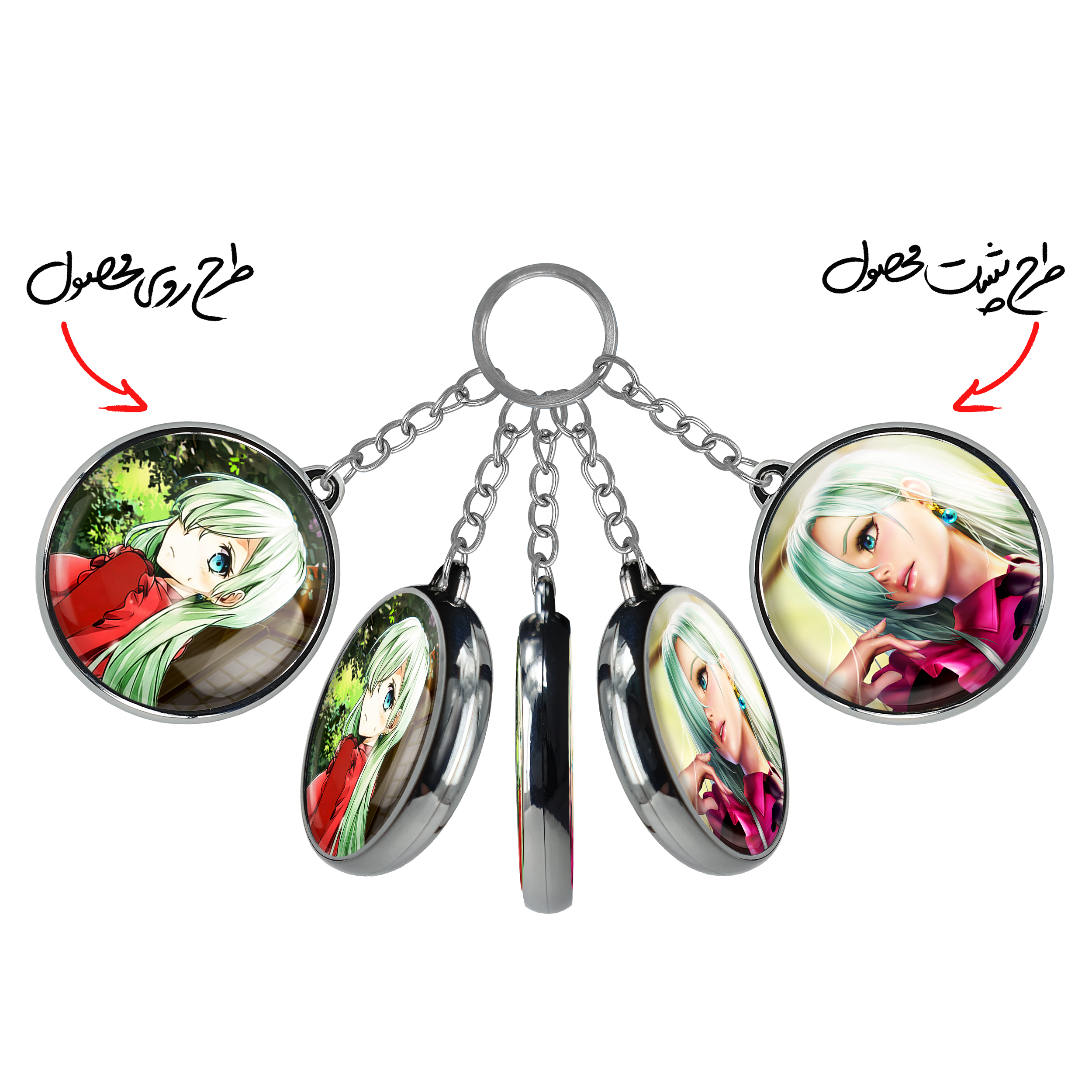 جاکلیدی دوطرفه الیزابت انیمه هفت گناه کبیره خندالو محصولی کاربردی و جدید است که در هر دو سمت محصول، تصویری متفاوت اما از یک موضوع چاپ شده و تفاوت اصلی آن با جاکلیدی های یک طرفه در همین است که هر دو سمت پشت و روی جاکلیدی، طرحی دیدنی و جذاب دارد.