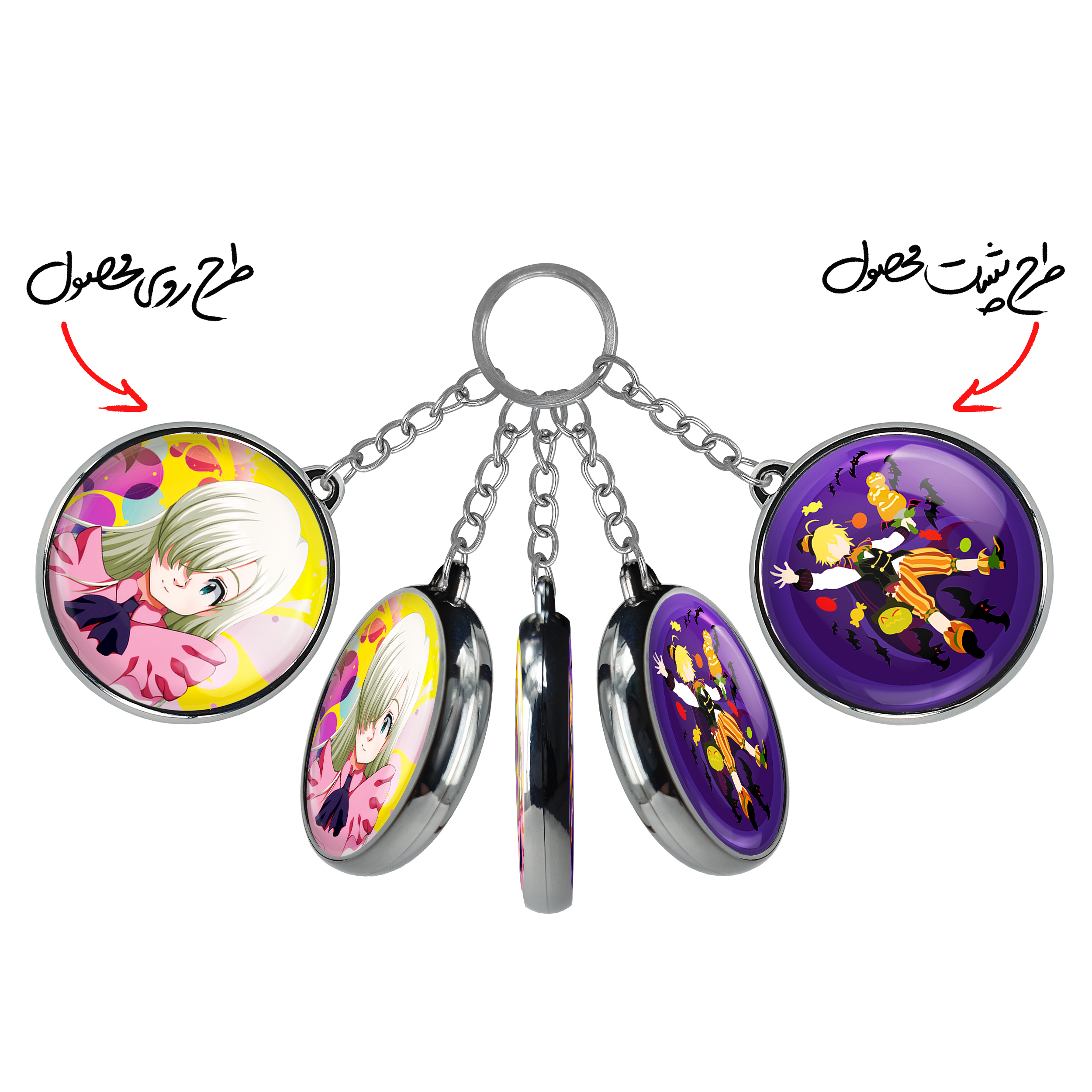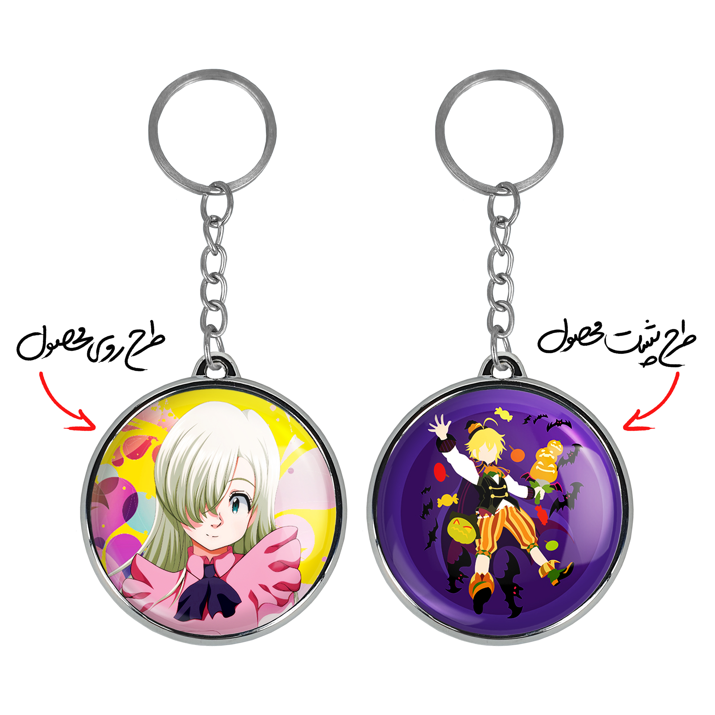 جاکلیدی دوطرفه الیزابت انیمه هفت گناه کبیره خندالو محصولی کاربردی و جدید است که در هر دو سمت محصول، تصویری متفاوت اما از یک موضوع چاپ شده و تفاوت اصلی آن با جاکلیدی های یک طرفه در همین است که هر دو سمت پشت و روی جاکلیدی، طرحی دیدنی و جذاب دارد.