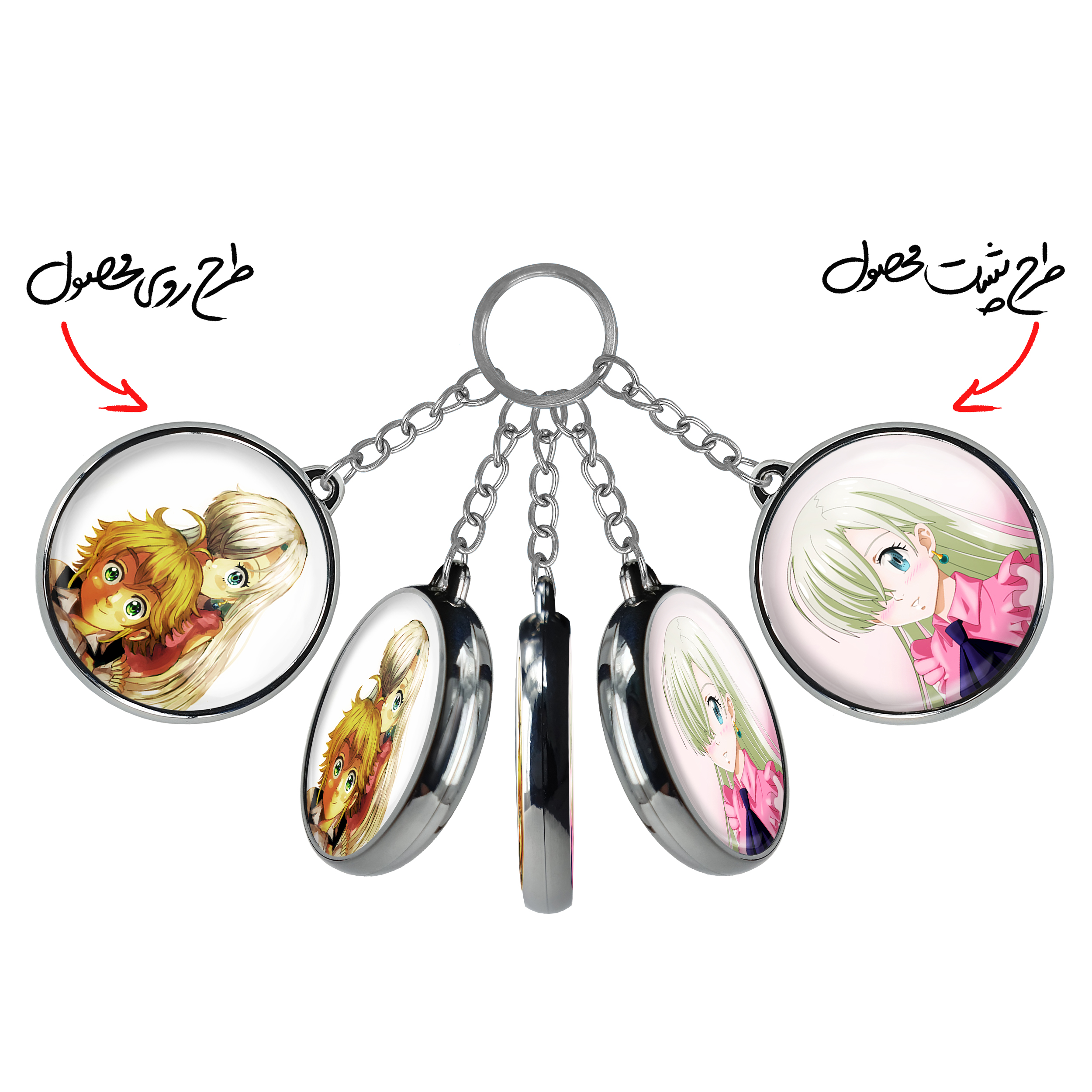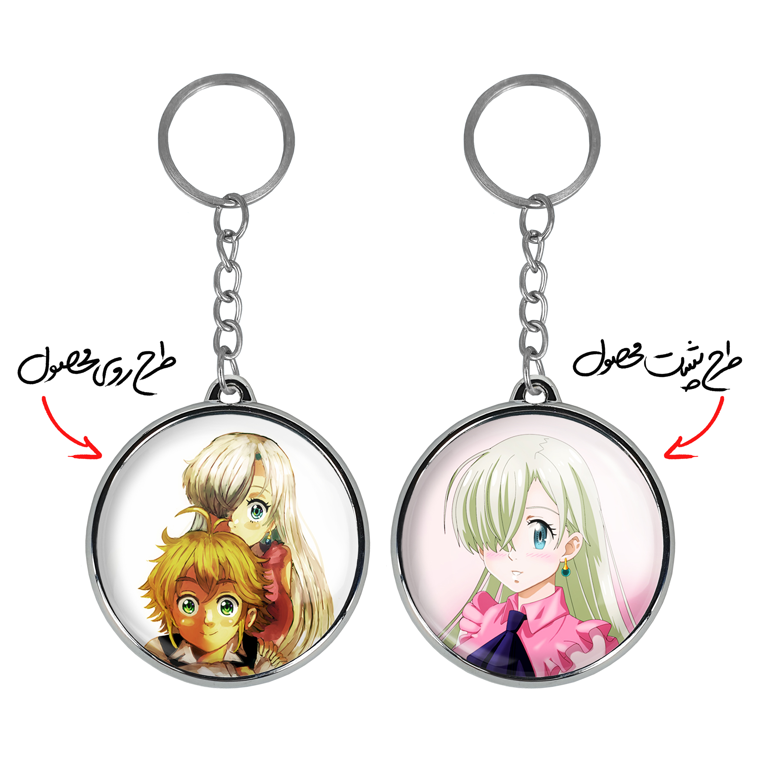 جاکلیدی دوطرفه الیزابت و ملیوداس انیمه هفت گناه کبیره خندالو محصولی کاربردی و جدید است که در هر دو سمت محصول، تصویری متفاوت اما از یک موضوع چاپ شده و تفاوت اصلی آن با جاکلیدی های یک طرفه در همین است که هر دو سمت پشت و روی جاکلیدی، طرحی دیدنی و جذاب دارد.