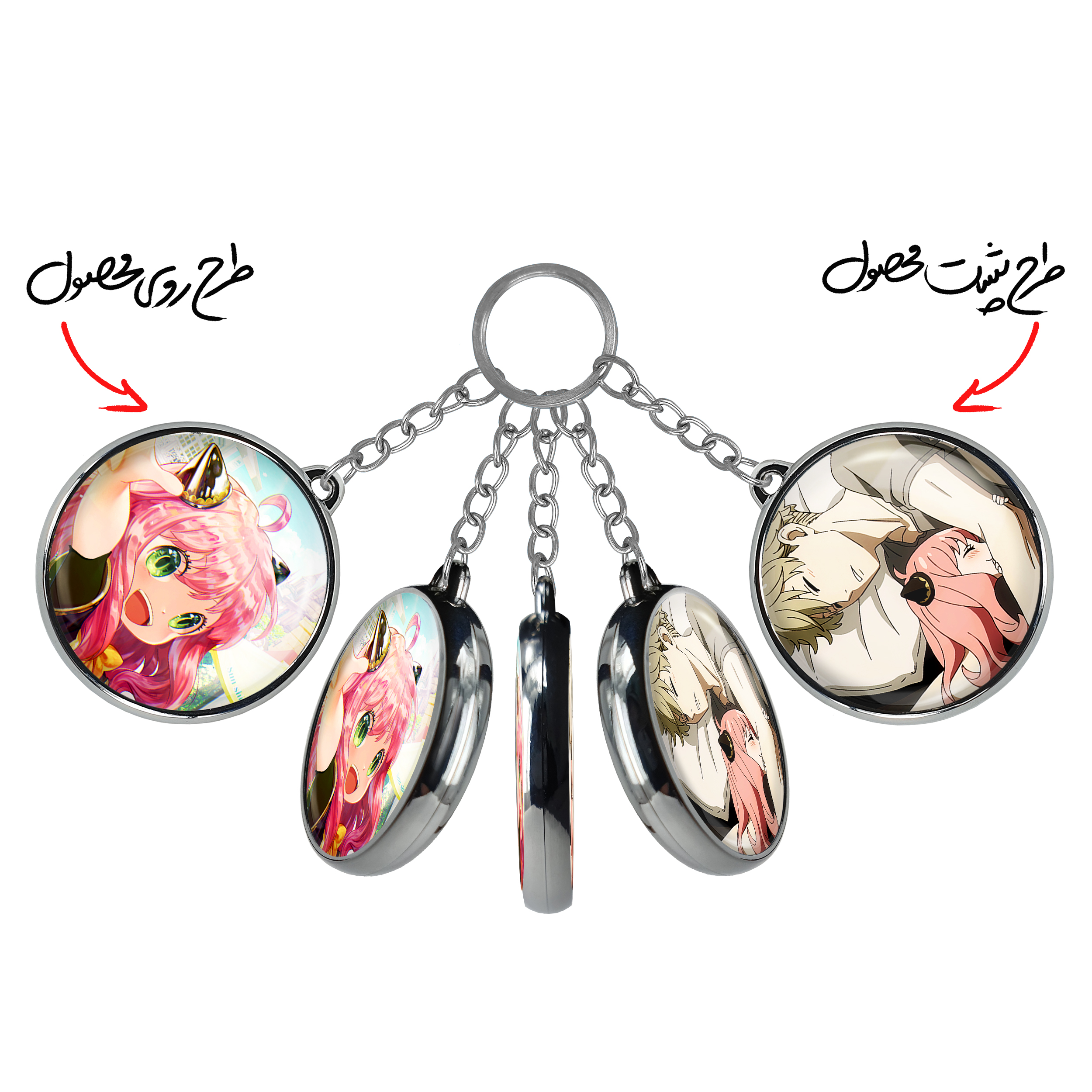 جاکلیدی دوطرفه انیا فورجر انیمه اسپای ایکس فمیلی Spy x Family خندالو محصولی کاربردی و جدید است که در هر دو سمت محصول، تصویری متفاوت اما از یک موضوع چاپ شده و تفاوت اصلی آن با جاکلیدی های یک طرفه در همین است که هر دو سمت پشت و روی جاکلیدی، طرحی دیدنی و جذاب دارد.