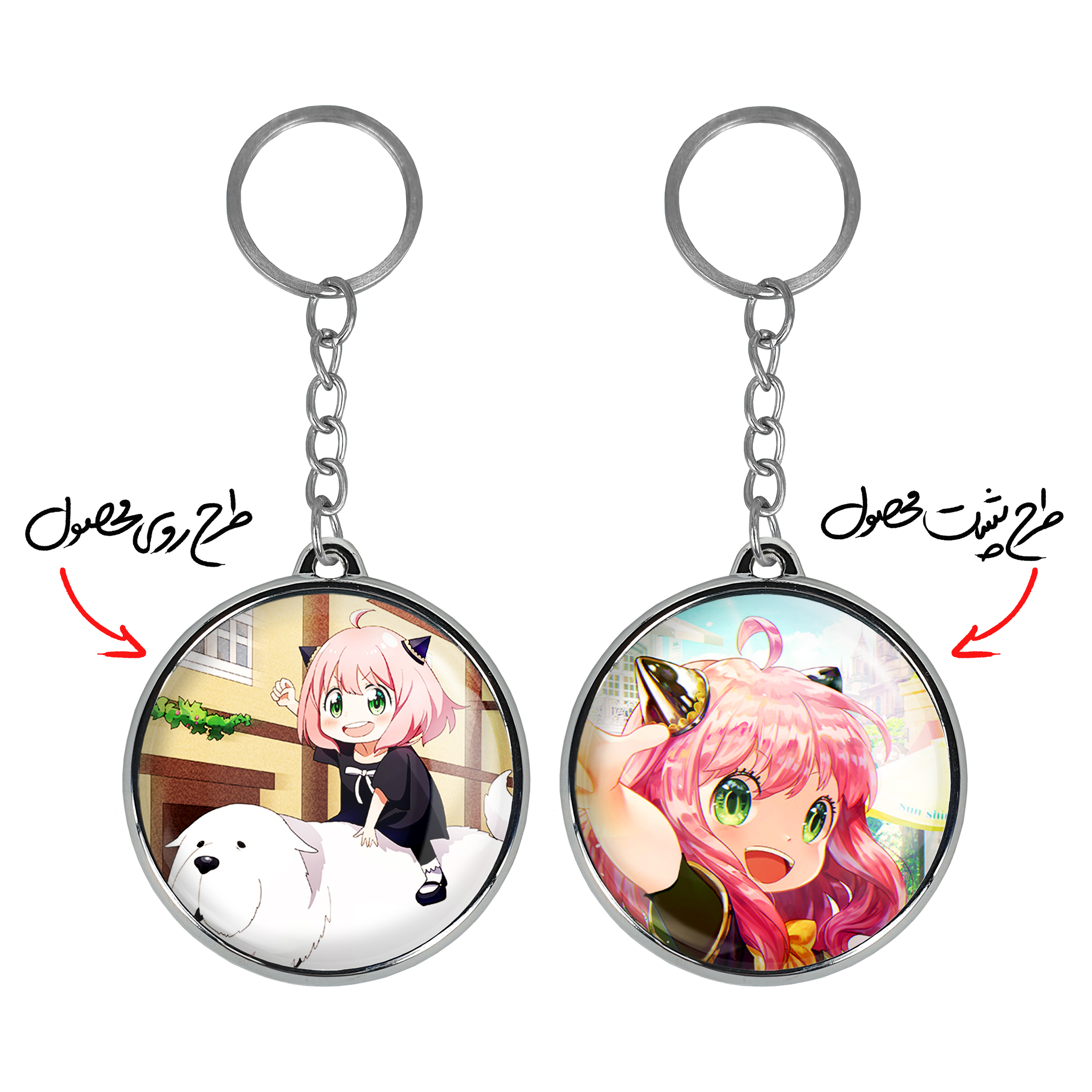 جاکلیدی دوطرفه انیا فورجر انیمه اسپای ایکس فمیلی Spy x Family خندالو محصولی کاربردی و جدید است که در هر دو سمت محصول، تصویری متفاوت اما از یک موضوع چاپ شده و تفاوت اصلی آن با جاکلیدی های یک طرفه در همین است که هر دو سمت پشت و روی جاکلیدی، طرحی دیدنی و جذاب دارد.