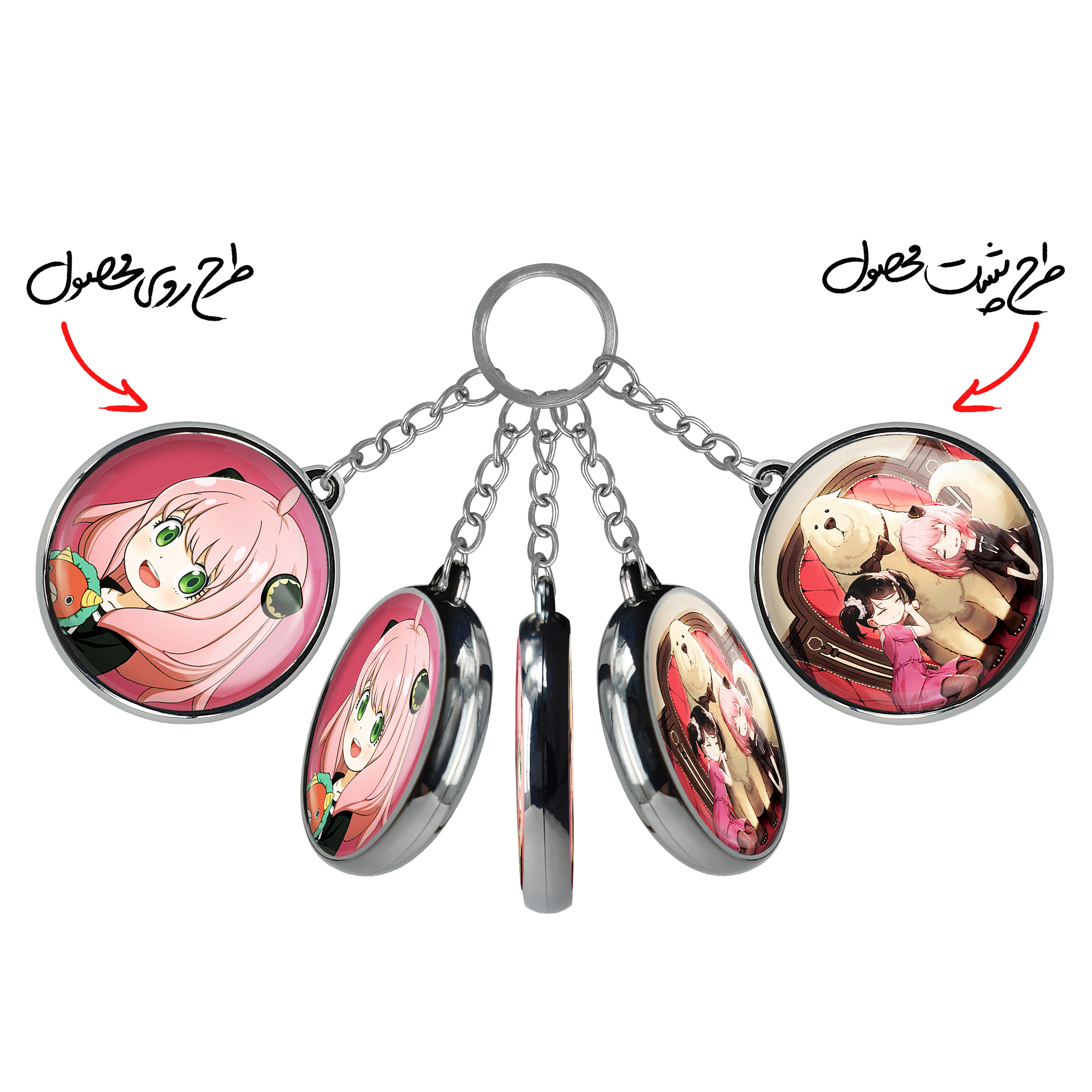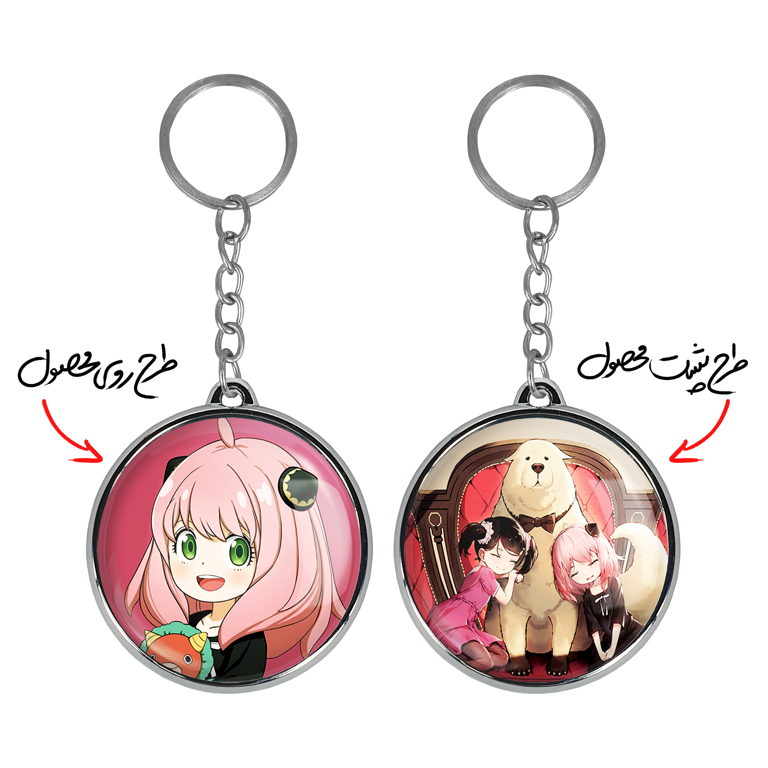 جاکلیدی دوطرفه انیا فورجر انیمه اسپای ایکس فمیلی Spy x Family خندالو محصولی کاربردی و جدید است که در هر دو سمت محصول، تصویری متفاوت اما از یک موضوع چاپ شده و تفاوت اصلی آن با جاکلیدی های یک طرفه در همین است که هر دو سمت پشت و روی جاکلیدی، طرحی دیدنی و جذاب دارد.