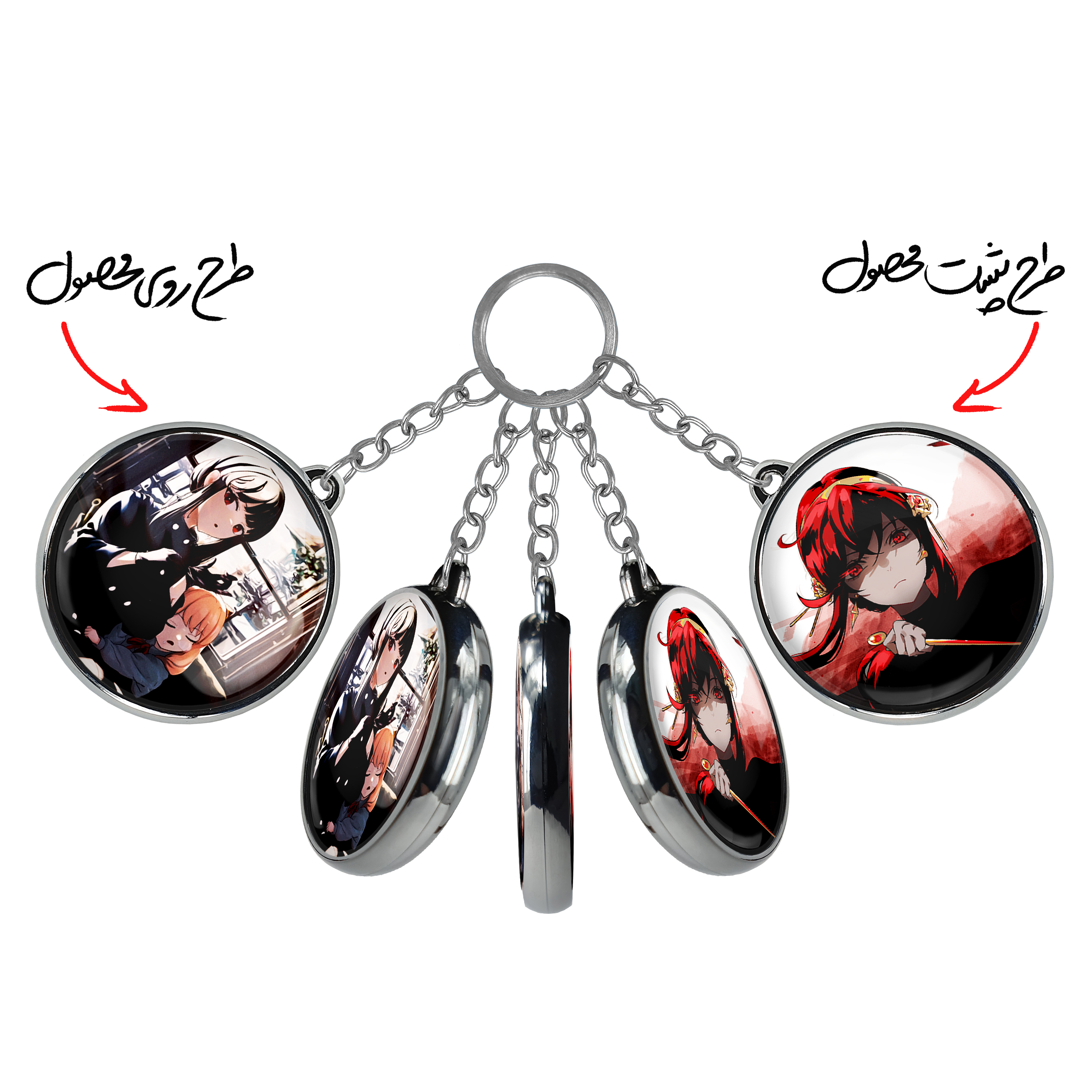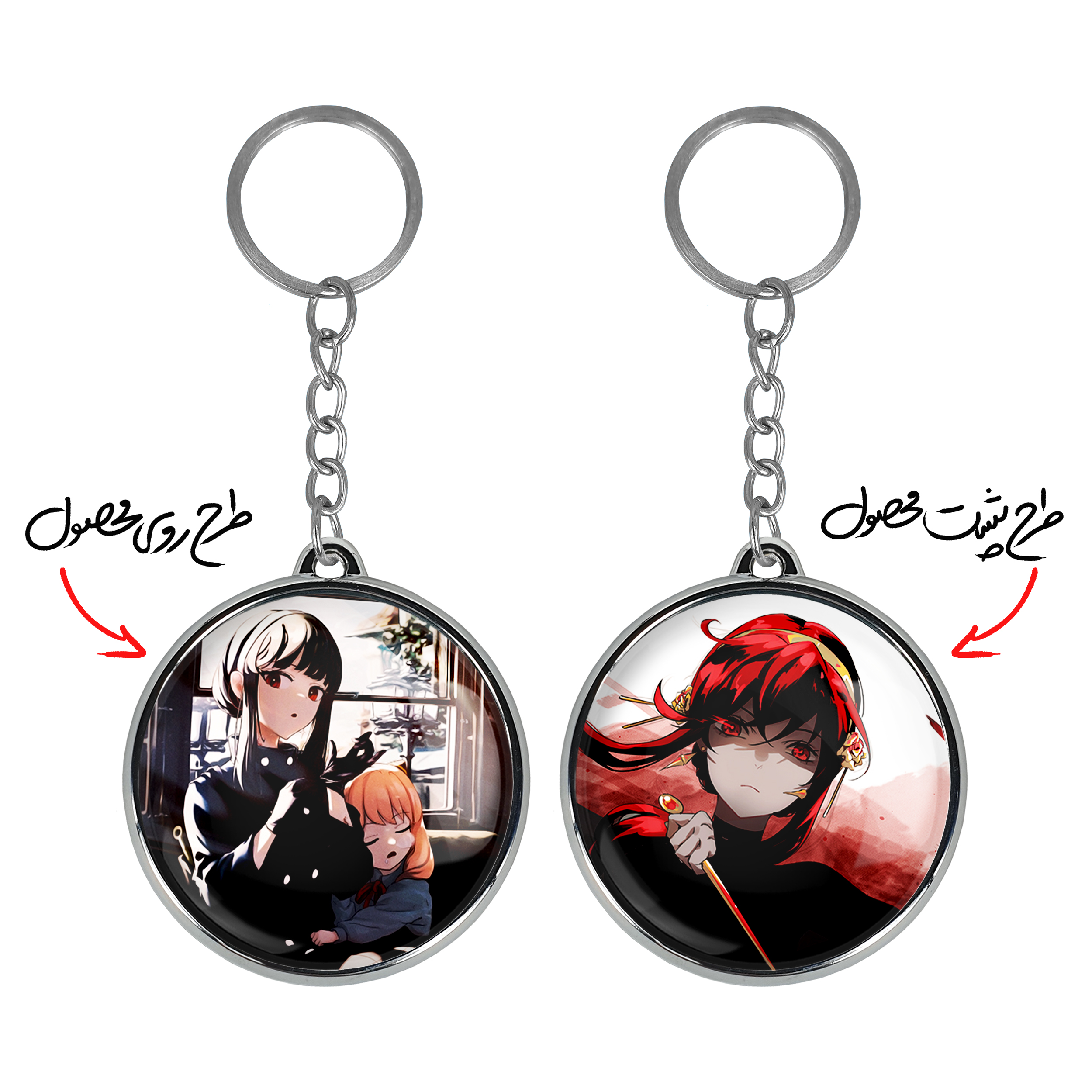 جاکلیدی دوطرفه انیا فورجر و یور انیمه اسپای ایکس فمیلی Spy x Family خندالو محصولی کاربردی و جدید است که در هر دو سمت محصول، تصویری متفاوت اما از یک موضوع چاپ شده و تفاوت اصلی آن با جاکلیدی های یک طرفه در همین است که هر دو سمت پشت و روی جاکلیدی، طرحی دیدنی و جذاب دارد. همچنین رینگ بکار برده شده برای دور طرح ها آبکاری کروم درجه یک و رنگ ثابت است و برخلاف سایر محصولات مشابه، از رنگ های متفرقه و یا سفید استفاده نشده، که این مهم، زیبایی محصول نهایی را چند برابر کرده است. جاکلیدی های دوطرفه انیا فورجر و یور انیمه اسپای ایکس فمیلی Spy x Family با استفاده از روکش سلفون براق ضدخش تولید شده که خاصیت ضدخش بودن آن عمر مفید استفاده از جاکلیدی ها را افزایش میدهد. چاپ جاکلیدی ها با دستگاه های استاندارد و با بهترین سطح کیفیت صورت گرفته و طرح با شفافیتی مثال زدنی و با سلفون چسبی تولید شده است که باعث شده محصول نهایی بدون شکست نور دیده شود. همچنین بسته بندی جذاب و مینیمال جاکلیدی دوطرفه انیا فورجر و یور انیمه اسپای ایکس فمیلی Spy x Family ، آنها را محصولی مناسب هدیه کرده است. زنجیر و حلقه بکار برده شده در جاکلیدی خندالو از نوع حلقه ضخیم و محکم بوده و حین استفاده آسیب نمی بیند.