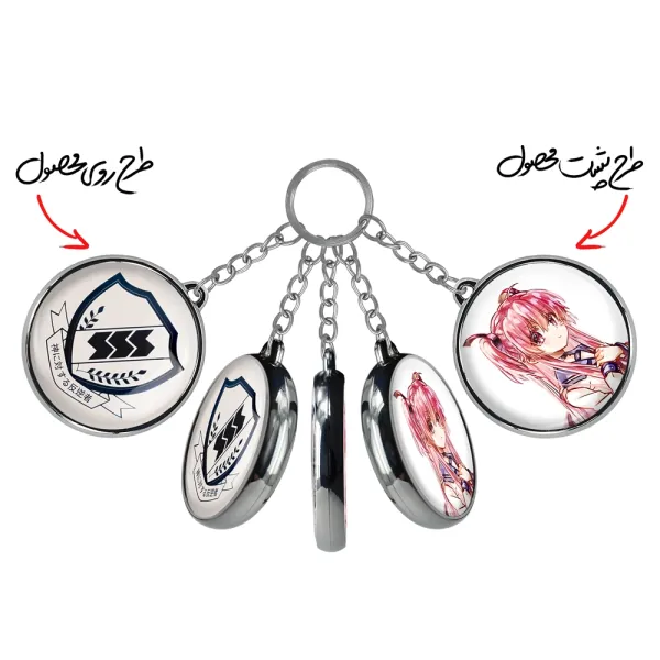 جاکلیدی دوطرفه انیمه آنجل بیتس خندالو محصولی کاربردی و جدید است که در هر دو سمت محصول، تصویری متفاوت اما از یک موضوع چاپ شده و تفاوت اصلی آن با جاکلیدی های یک طرفه در همین است که هر دو سمت پشت و روی جاکلیدی، طرحی دیدنی و جذاب دارد. همچنین رینگ بکار برده شده برای دور طرح ها آبکاری کروم درجه یک و رنگ ثابت است و برخلاف سایر محصولات مشابه، از رنگ های متفرقه و یا سفید استفاده نشده، که این مهم، زیبایی محصول نهایی را چند برابر کرده است. جاکلیدی های دوطرفه انیمه آنجل بیتس با استفاده از روکش سلفون براق ضدخش تولید شده که خاصیت ضدخش بودن آن عمر مفید استفاده از جاکلیدی ها را افزایش میدهد. چاپ جاکلیدی ها با دستگاه های استاندارد و با بهترین سطح کیفیت صورت گرفته و طرح با شفافیتی مثال زدنی و با سلفون چسبی تولید شده است که باعث شده محصول نهایی بدون شکست نور دیده شود. همچنین بسته بندی جذاب و مینیمال جاکلیدی دوطرفه انیمه آنجل بیتس، آنها را محصولی مناسب هدیه کرده است. زنجیر و حلقه بکار برده شده در جاکلیدی خندالو از نوع حلقه ضخیم و محکم بوده و حین استفاده آسیب نمی بیند.