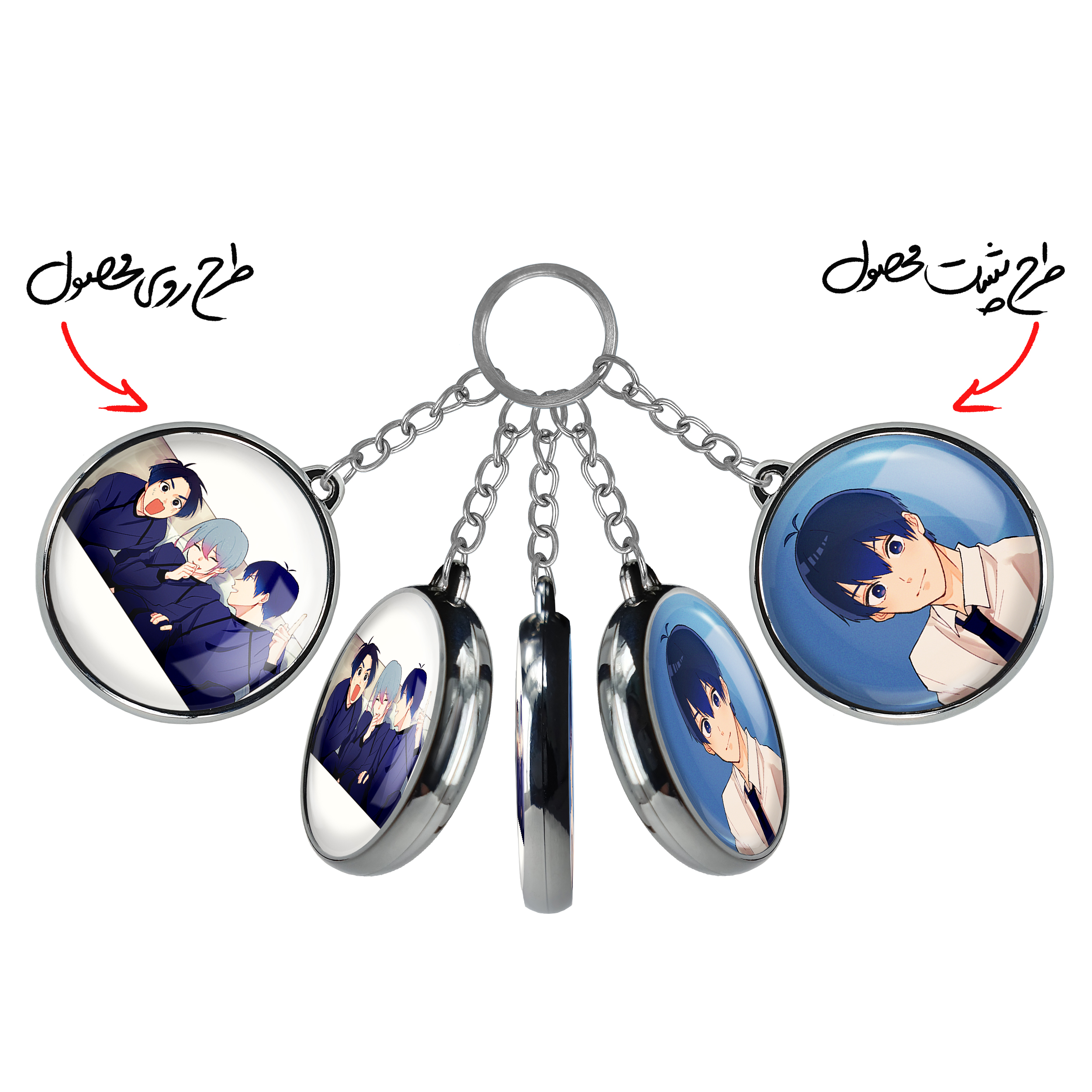 جاکلیدی دوطرفه انیمه بلو لاک Blue Lockخندالو محصولی کاربردی و جدید است که در هر دو سمت محصول، تصویری متفاوت اما از یک موضوع چاپ شده و تفاوت اصلی آن با جاکلیدی های یک طرفه در همین است که هر دو سمت پشت و روی جاکلیدی، طرحی دیدنی و جذاب دارد. همچنین رینگ بکار برده شده برای دور طرح ها آبکاری کروم درجه یک و رنگ ثابت است و برخلاف سایر محصولات مشابه، از رنگ های متفرقه و یا سفید استفاده نشده، که این مهم، زیبایی محصول نهایی را چند برابر کرده است. جاکلیدی های دوطرفه انیمه بلو لاک Blue Lockبا استفاده از روکش سلفون براق ضدخش تولید شده که خاصیت ضدخش بودن آن عمر مفید استفاده از جاکلیدی ها را افزایش میدهد. چاپ جاکلیدی ها با دستگاه های استاندارد و با بهترین سطح کیفیت صورت گرفته و طرح با شفافیتی مثال زدنی و با سلفون چسبی تولید شده است که باعث شده محصول نهایی بدون شکست نور دیده شود. همچنین بسته بندی جذاب و مینیمال جاکلیدی دوطرفه انیمه بلو لاک Blue Lock، آنها را محصولی مناسب هدیه کرده است. زنجیر و حلقه بکار برده شده در جاکلیدی خندالو از نوع حلقه ضخیم و محکم بوده و حین استفاده آسیب نمی بیند.