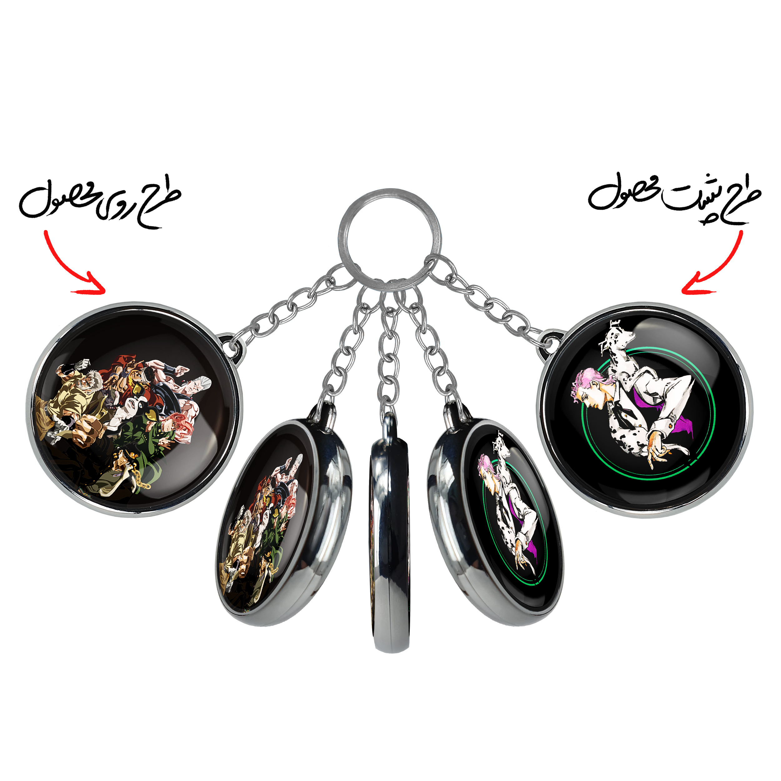 جاکلیدی دوطرفه انیمه جوجو Jojo خندالو محصولی کاربردی و جدید است که در هر دو سمت محصول، تصویری متفاوت اما از یک موضوع چاپ شده و تفاوت اصلی آن با جاکلیدی های یک طرفه در همین است که هر دو سمت پشت و روی جاکلیدی، طرحی دیدنی و جذاب دارد. همچنین رینگ بکار برده شده برای دور طرح ها آبکاری کروم درجه یک و رنگ ثابت است و برخلاف سایر محصولات مشابه، از رنگ های متفرقه و یا سفید استفاده نشده، که این مهم، زیبایی محصول نهایی را چند برابر کرده است. جاکلیدی های دوطرفه انیمه جوجو Jojo با استفاده از روکش سلفون براق ضدخش تولید شده که خاصیت ضدخش بودن آن عمر مفید استفاده از جاکلیدی ها را افزایش میدهد. چاپ جاکلیدی ها با دستگاه های استاندارد و با بهترین سطح کیفیت صورت گرفته و طرح با شفافیتی مثال زدنی و با سلفون چسبی تولید شده است که باعث شده محصول نهایی بدون شکست نور دیده شود. همچنین بسته بندی جذاب و مینیمال جاکلیدی دوطرفه انیمه جوجو Jojo ، آنها را محصولی مناسب هدیه کرده است. زنجیر و حلقه بکار برده شده در جاکلیدی خندالو از نوع حلقه ضخیم و محکم بوده و حین استفاده آسیب نمی بیند.