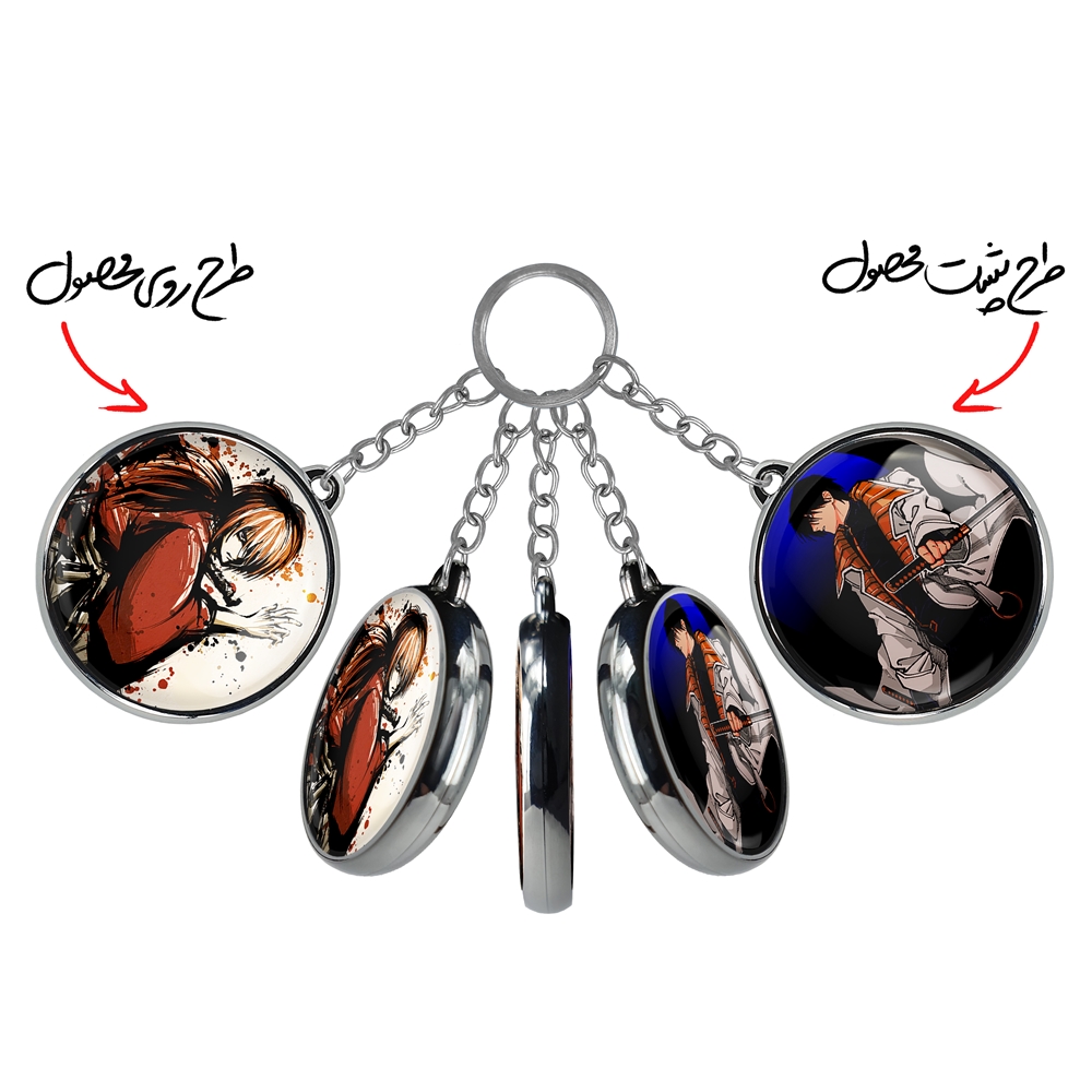 جاکلیدی دوطرفه انیمه رورونی کنشین خندالو محصولی کاربردی و جدید است که در هر دو سمت محصول، تصویری متفاوت اما از یک موضوع چاپ شده و تفاوت اصلی آن با جاکلیدی های یک طرفه در همین است که هر دو سمت پشت و روی جاکلیدی، طرحی دیدنی و جذاب دارد.