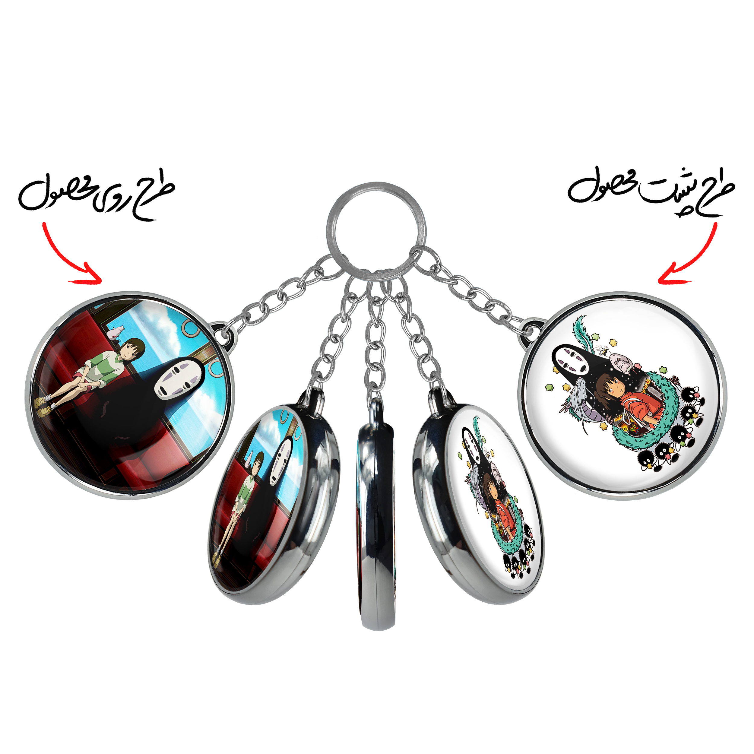 جاکلیدی دوطرفه انیمه شهر اشباح Spirited Away خندالو محصولی کاربردی و جدید است که در هر دو سمت محصول، تصویری متفاوت اما از یک موضوع چاپ شده و تفاوت اصلی آن با جاکلیدی های یک طرفه در همین است که هر دو سمت پشت و روی جاکلیدی، طرحی دیدنی و جذاب دارد.