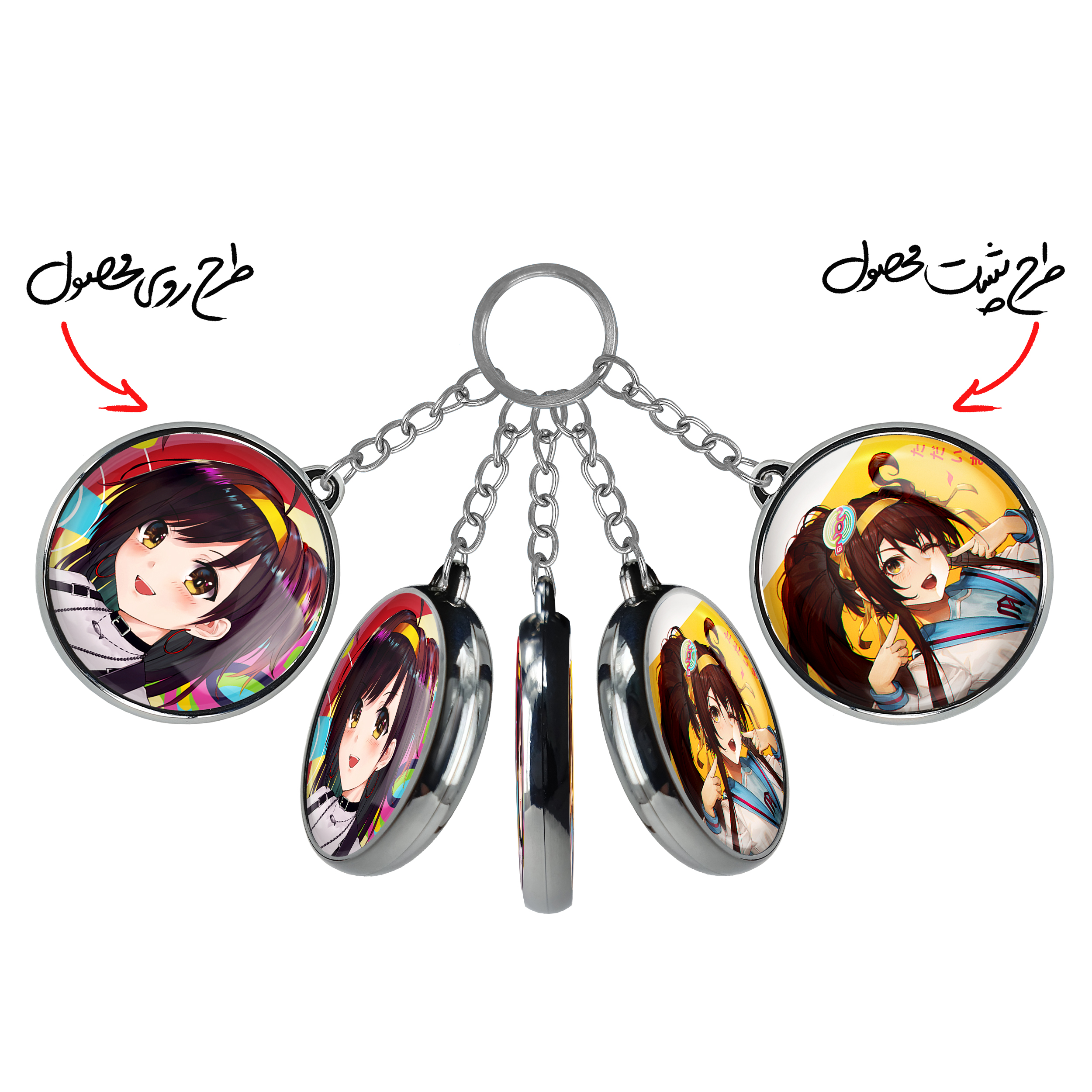 جاکلیدی دوطرفه انیمه ناپدید شدن هاروهی سوزومیاخندالو محصولی کاربردی و جدید است که در هر دو سمت محصول، تصویری متفاوت اما از یک موضوع چاپ شده و تفاوت اصلی آن با جاکلیدی های یک طرفه در همین است که هر دو سمت پشت و روی جاکلیدی، طرحی دیدنی و جذاب دارد.