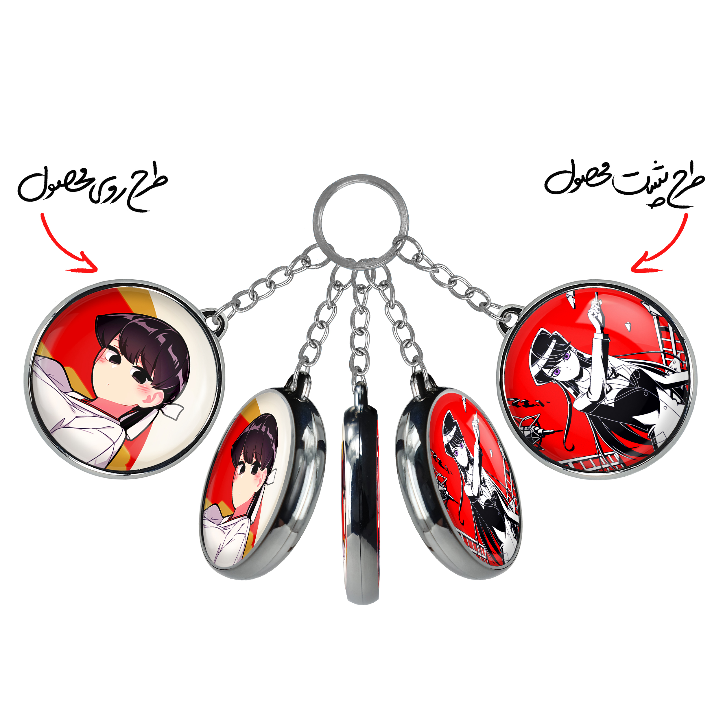 جاکلیدی دوطرفه انیمه کومی سان خندالو محصولی کاربردی و جدید است که در هر دو سمت محصول، تصویری متفاوت اما از یک موضوع چاپ شده و تفاوت اصلی آن با جاکلیدی های یک طرفه در همین است که هر دو سمت پشت و روی جاکلیدی، طرحی دیدنی و جذاب دارد.