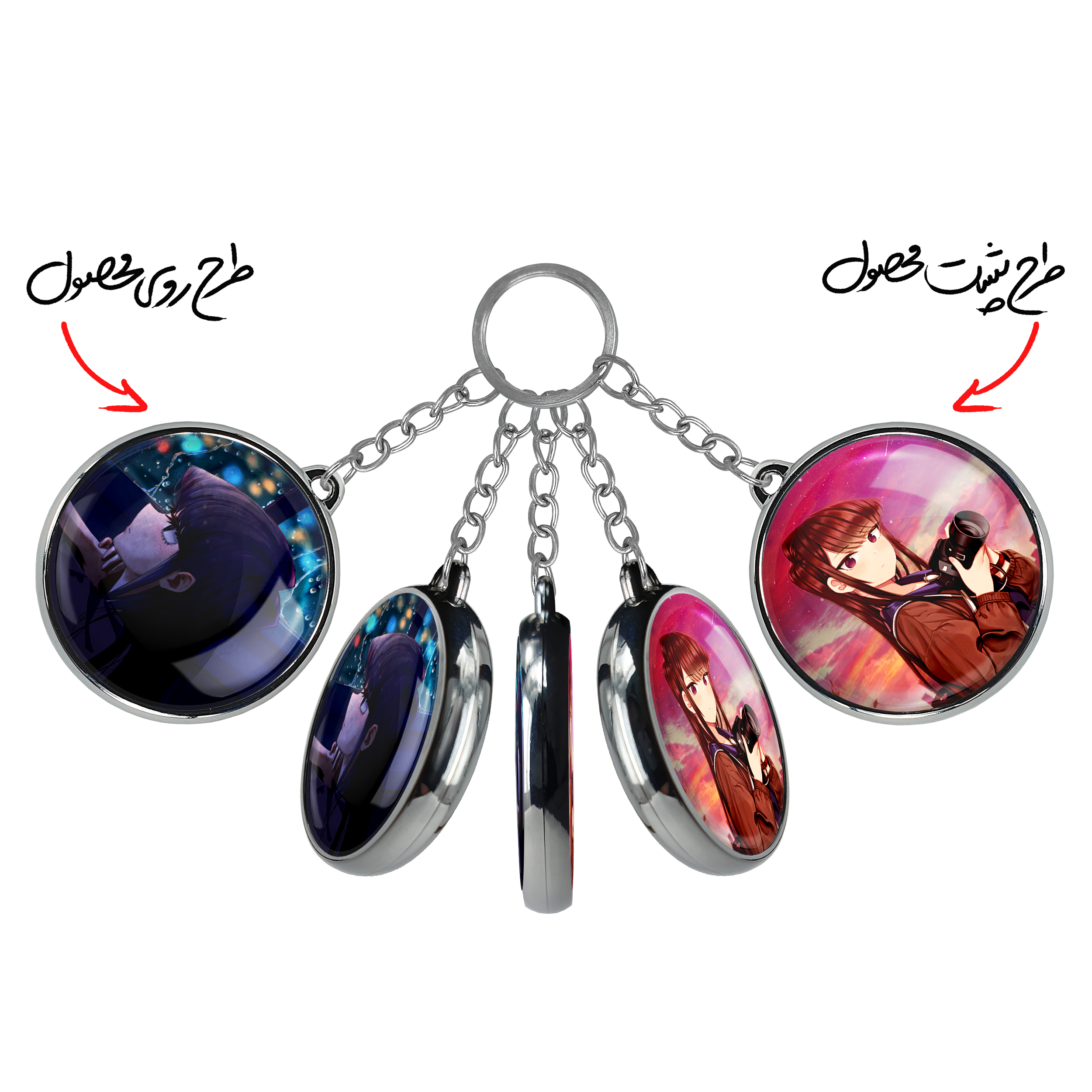 جاکلیدی دوطرفه انیمه کومی سان خندالو محصولی کاربردی و جدید است که در هر دو سمت محصول، تصویری متفاوت اما از یک موضوع چاپ شده و تفاوت اصلی آن با جاکلیدی های یک طرفه در همین است که هر دو سمت پشت و روی جاکلیدی، طرحی دیدنی و جذاب دارد.