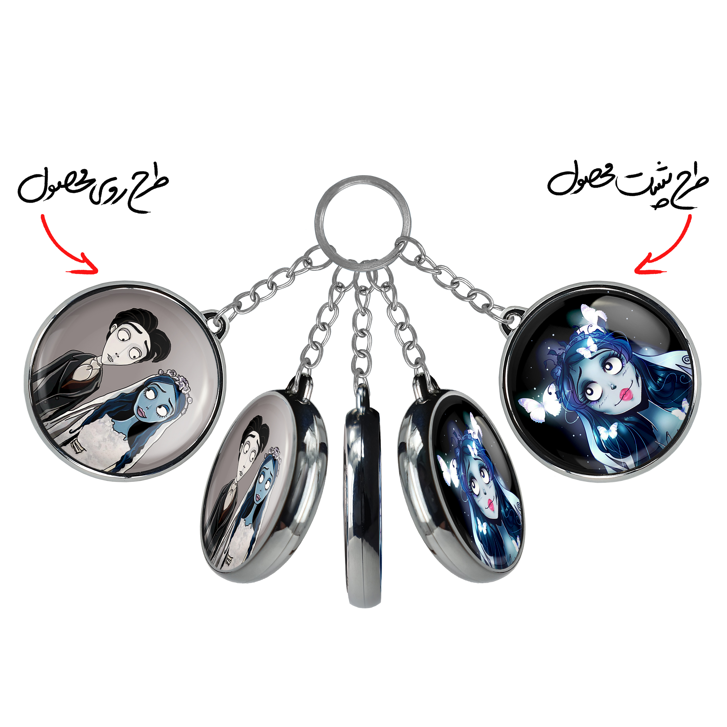جاکلیدی دوطرفه انیمیشن عروس مردگانخندالو محصولی کاربردی و جدید است که در هر دو سمت محصول، تصویری متفاوت اما از یک موضوع چاپ شده و تفاوت اصلی آن با جاکلیدی های یک طرفه در همین است که هر دو سمت پشت و روی جاکلیدی، طرحی دیدنی و جذاب دارد.