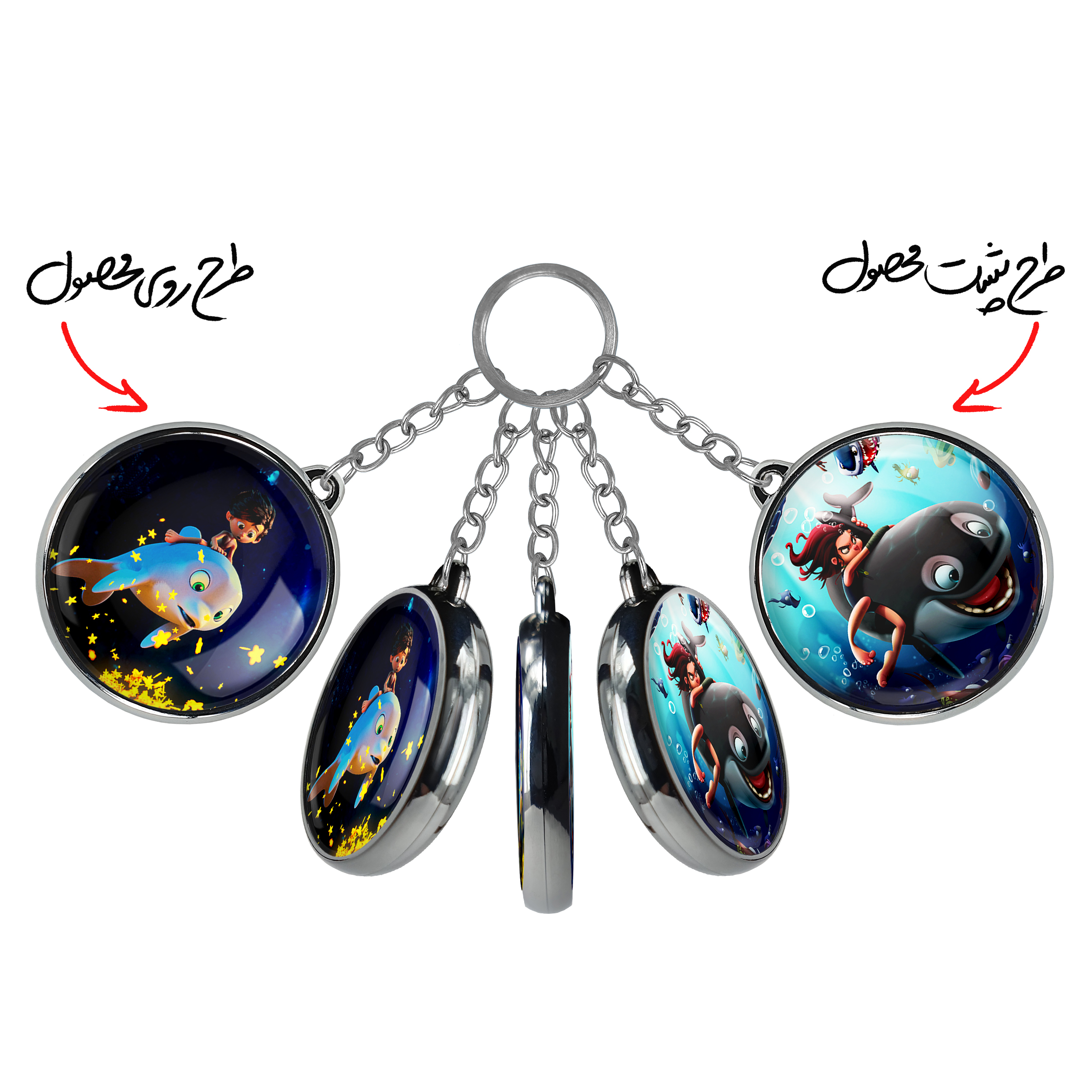جاکلیدی دوطرفه انیمیشن پسر دلفینیخندالو محصولی کاربردی و جدید است که در هر دو سمت محصول، تصویری متفاوت اما از یک موضوع چاپ شده و تفاوت اصلی آن با جاکلیدی های یک طرفه در همین است که هر دو سمت پشت و روی جاکلیدی، طرحی دیدنی و جذاب دارد. همچنین رینگ بکار برده شده برای دور طرح ها آبکاری کروم درجه یک و رنگ ثابت است و برخلاف سایر محصولات مشابه، از رنگ های متفرقه و یا سفید استفاده نشده، که این مهم، زیبایی محصول نهایی را چند برابر کرده است. جاکلیدی های دوطرفه انیمیشن پسر دلفینیبا استفاده از روکش سلفون براق ضدخش تولید شده که خاصیت ضدخش بودن آن عمر مفید استفاده از جاکلیدی ها را افزایش میدهد. چاپ جاکلیدی ها با دستگاه های استاندارد و با بهترین سطح کیفیت صورت گرفته و طرح با شفافیتی مثال زدنی و با سلفون چسبی تولید شده است که باعث شده محصول نهایی بدون شکست نور دیده شود. همچنین بسته بندی جذاب و مینیمال جاکلیدی دوطرفه انیمیشن پسر دلفینی، آنها را محصولی مناسب هدیه کرده است. زنجیر و حلقه بکار برده شده در جاکلیدی خندالو از نوع حلقه ضخیم و محکم بوده و حین استفاده آسیب نمی بیند.