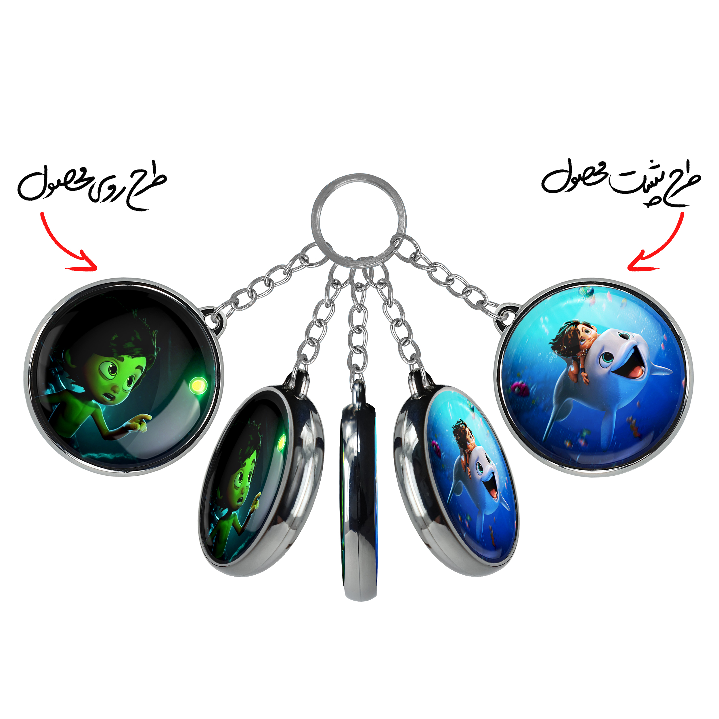 جاکلیدی دوطرفه انیمیشن پسر دلفینیخندالو محصولی کاربردی و جدید است که در هر دو سمت محصول، تصویری متفاوت اما از یک موضوع چاپ شده و تفاوت اصلی آن با جاکلیدی های یک طرفه در همین است که هر دو سمت پشت و روی جاکلیدی، طرحی دیدنی و جذاب دارد. همچنین رینگ بکار برده شده برای دور طرح ها آبکاری کروم درجه یک و رنگ ثابت است و برخلاف سایر محصولات مشابه، از رنگ های متفرقه و یا سفید استفاده نشده، که این مهم، زیبایی محصول نهایی را چند برابر کرده است. جاکلیدی های دوطرفه انیمیشن پسر دلفینیبا استفاده از روکش سلفون براق ضدخش تولید شده که خاصیت ضدخش بودن آن عمر مفید استفاده از جاکلیدی ها را افزایش میدهد. چاپ جاکلیدی ها با دستگاه های استاندارد و با بهترین سطح کیفیت صورت گرفته و طرح با شفافیتی مثال زدنی و با سلفون چسبی تولید شده است که باعث شده محصول نهایی بدون شکست نور دیده شود. همچنین بسته بندی جذاب و مینیمال جاکلیدی دوطرفه انیمیشن پسر دلفینی، آنها را محصولی مناسب هدیه کرده است. زنجیر و حلقه بکار برده شده در جاکلیدی خندالو از نوع حلقه ضخیم و محکم بوده و حین استفاده آسیب نمی بیند.