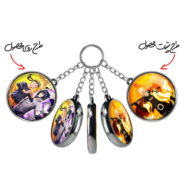 جاکلیدی دوطرفه اوزوماکی و ساسکه انیمه ناروتو Naruto خندالو محصولی کاربردی و جدید است که در هر دو سمت محصول، تصویری متفاوت اما از یک موضوع چاپ شده و تفاوت اصلی آن با جاکلیدی های یک طرفه در همین است که هر دو سمت پشت و روی جاکلیدی، طرحی دیدنی و جذاب دارد. همچنین رینگ بکار برده شده برای دور طرح ها آبکاری کروم درجه یک و رنگ ثابت است و برخلاف سایر محصولات مشابه، از رنگ های متفرقه و یا سفید استفاده نشده، که این مهم، زیبایی محصول نهایی را چند برابر کرده است. جاکلیدی های دوطرفه اوزوماکی و ساسکه انیمه ناروتو Naruto با استفاده از روکش سلفون براق ضدخش تولید شده که خاصیت ضدخش بودن آن عمر مفید استفاده از جاکلیدی ها را افزایش میدهد. چاپ جاکلیدی ها با دستگاه های استاندارد و با بهترین سطح کیفیت صورت گرفته و طرح با شفافیتی مثال زدنی و با سلفون چسبی تولید شده است که باعث شده محصول نهایی بدون شکست نور دیده شود. همچنین بسته بندی جذاب و مینیمال جاکلیدی دوطرفه اوزوماکی و ساسکه انیمه ناروتو Naruto ، آنها را محصولی مناسب هدیه کرده است. زنجیر و حلقه بکار برده شده در جاکلیدی خندالو از نوع حلقه ضخیم و محکم بوده و حین استفاده آسیب نمی بیند.