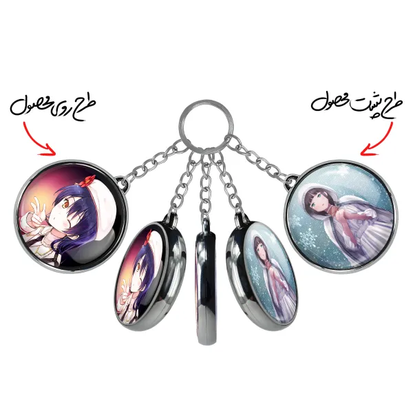 جاکلیدی دوطرفه اومی سونادا انیمه لاو لایو Love Live خندالو محصولی کاربردی و جدید است که در هر دو سمت محصول، تصویری متفاوت اما از یک موضوع چاپ شده و تفاوت اصلی آن با جاکلیدی های یک طرفه در همین است که هر دو سمت پشت و روی جاکلیدی، طرحی دیدنی و جذاب دارد. همچنین رینگ بکار برده شده برای دور طرح ها آبکاری کروم درجه یک و رنگ ثابت است و برخلاف سایر محصولات مشابه، از رنگ های متفرقه و یا سفید استفاده نشده، که این مهم، زیبایی محصول نهایی را چند برابر کرده است. جاکلیدی های دوطرفه اومی سونادا انیمه لاو لایو Love Live با استفاده از روکش سلفون براق ضدخش تولید شده که خاصیت ضدخش بودن آن عمر مفید استفاده از جاکلیدی ها را افزایش میدهد. چاپ جاکلیدی ها با دستگاه های استاندارد و با بهترین سطح کیفیت صورت گرفته و طرح با شفافیتی مثال زدنی و با سلفون چسبی تولید شده است که باعث شده محصول نهایی بدون شکست نور دیده شود. همچنین بسته بندی جذاب و مینیمال جاکلیدی دوطرفه اومی سونادا انیمه لاو لایو Love Live ، آنها را محصولی مناسب هدیه کرده است. زنجیر و حلقه بکار برده شده در جاکلیدی خندالو از نوع حلقه ضخیم و محکم بوده و حین استفاده آسیب نمی بیند.