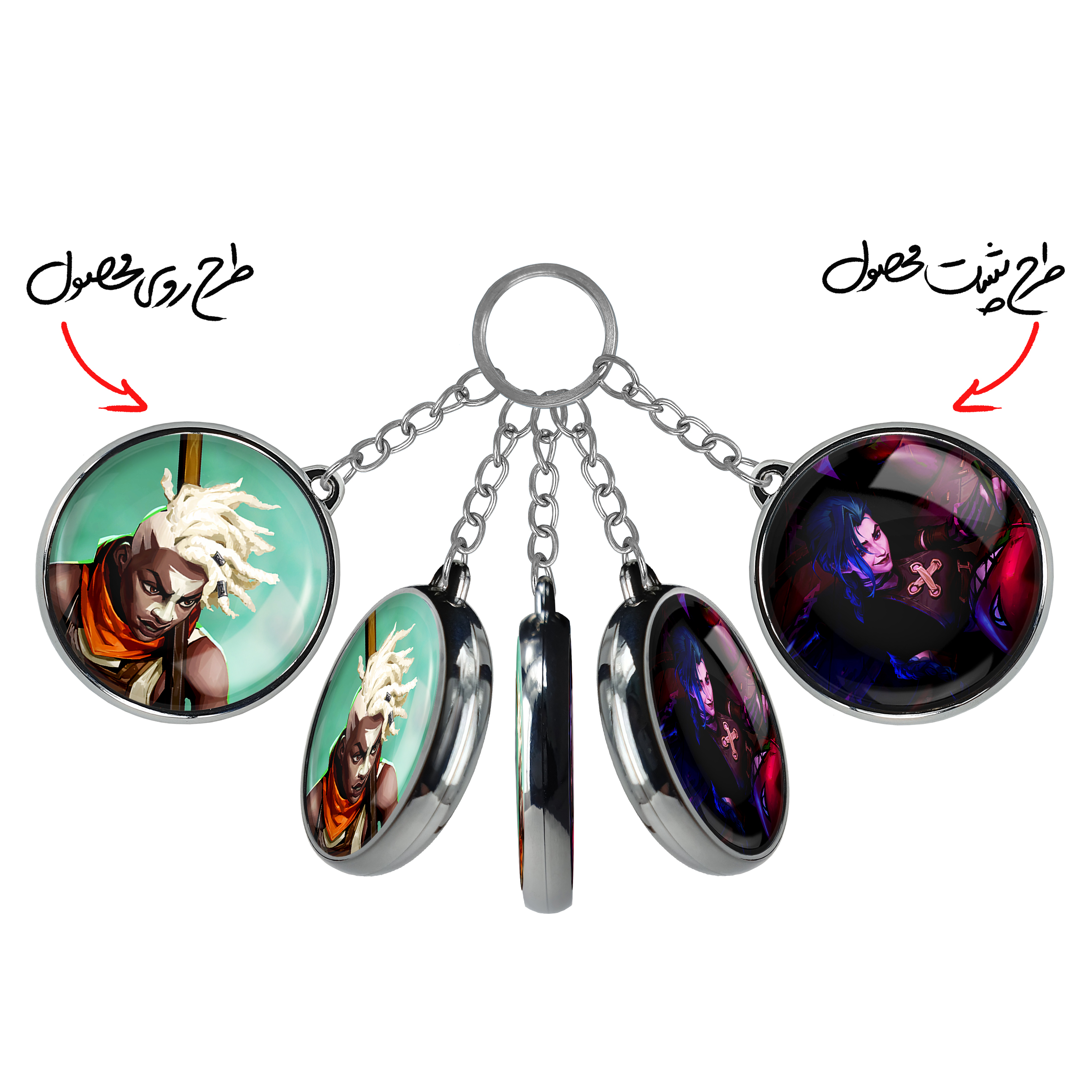 جاکلیدی دوطرفه اکو آرکینخندالو محصولی کاربردی و جدید است که در هر دو سمت محصول، تصویری متفاوت اما از یک موضوع چاپ شده و تفاوت اصلی آن با جاکلیدی های یک طرفه در همین است که هر دو سمت پشت و روی جاکلیدی، طرحی دیدنی و جذاب دارد. همچنین رینگ بکار برده شده برای دور طرح ها آبکاری کروم درجه یک و رنگ ثابت است و برخلاف سایر محصولات مشابه، از رنگ های متفرقه و یا سفید استفاده نشده، که این مهم، زیبایی محصول نهایی را چند برابر کرده است. جاکلیدی های دوطرفه اکو آرکینبا استفاده از روکش سلفون براق ضدخش تولید شده که خاصیت ضدخش بودن آن عمر مفید استفاده از جاکلیدی ها را افزایش میدهد. چاپ جاکلیدی ها با دستگاه های استاندارد و با بهترین سطح کیفیت صورت گرفته و طرح با شفافیتی مثال زدنی و با سلفون چسبی تولید شده است که باعث شده محصول نهایی بدون شکست نور دیده شود. همچنین بسته بندی جذاب و مینیمال جاکلیدی دوطرفه اکو آرکین، آنها را محصولی مناسب هدیه کرده است. زنجیر و حلقه بکار برده شده در جاکلیدی خندالو از نوع حلقه ضخیم و محکم بوده و حین استفاده آسیب نمی بیند.