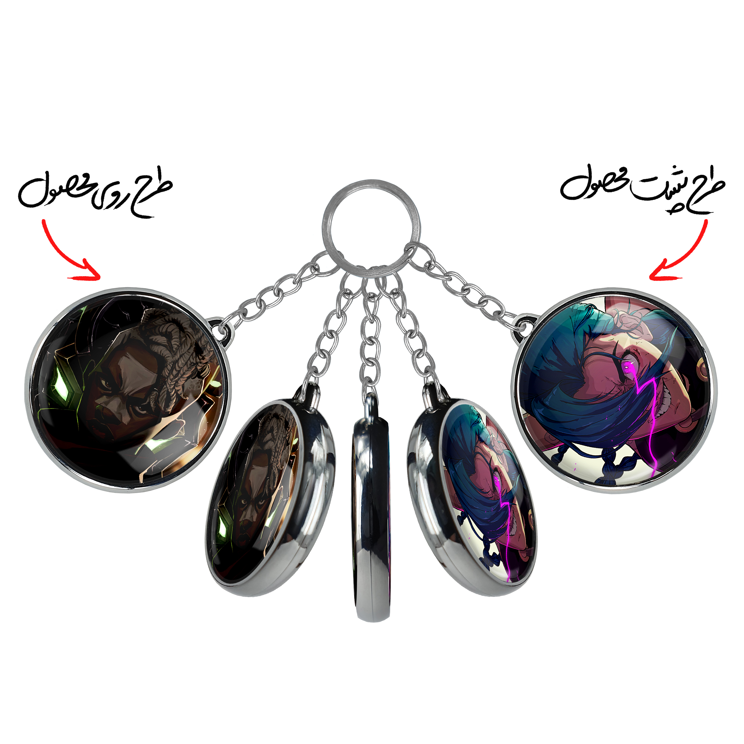 جاکلیدی دوطرفه اکو آرکینخندالو محصولی کاربردی و جدید است که در هر دو سمت محصول، تصویری متفاوت اما از یک موضوع چاپ شده و تفاوت اصلی آن با جاکلیدی های یک طرفه در همین است که هر دو سمت پشت و روی جاکلیدی، طرحی دیدنی و جذاب دارد. همچنین رینگ بکار برده شده برای دور طرح ها آبکاری کروم درجه یک و رنگ ثابت است و برخلاف سایر محصولات مشابه، از رنگ های متفرقه و یا سفید استفاده نشده، که این مهم، زیبایی محصول نهایی را چند برابر کرده است. جاکلیدی های دوطرفه اکو آرکینبا استفاده از روکش سلفون براق ضدخش تولید شده که خاصیت ضدخش بودن آن عمر مفید استفاده از جاکلیدی ها را افزایش میدهد. چاپ جاکلیدی ها با دستگاه های استاندارد و با بهترین سطح کیفیت صورت گرفته و طرح با شفافیتی مثال زدنی و با سلفون چسبی تولید شده است که باعث شده محصول نهایی بدون شکست نور دیده شود. همچنین بسته بندی جذاب و مینیمال جاکلیدی دوطرفه اکو آرکین، آنها را محصولی مناسب هدیه کرده است. زنجیر و حلقه بکار برده شده در جاکلیدی خندالو از نوع حلقه ضخیم و محکم بوده و حین استفاده آسیب نمی بیند.