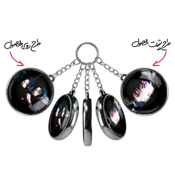 جاکلیدی دوطرفه ایتاچی و ساسکه انیمه ناروتو Naruto خندالو محصولی کاربردی و جدید است که در هر دو سمت محصول، تصویری متفاوت اما از یک موضوع چاپ شده و تفاوت اصلی آن با جاکلیدی های یک طرفه در همین است که هر دو سمت پشت و روی جاکلیدی، طرحی دیدنی و جذاب دارد. همچنین رینگ بکار برده شده برای دور طرح ها آبکاری کروم درجه یک و رنگ ثابت است و برخلاف سایر محصولات مشابه، از رنگ های متفرقه و یا سفید استفاده نشده، که این مهم، زیبایی محصول نهایی را چند برابر کرده است. جاکلیدی های دوطرفه ایتاچی و ساسکه انیمه ناروتو Naruto با استفاده از روکش سلفون براق ضدخش تولید شده که خاصیت ضدخش بودن آن عمر مفید استفاده از جاکلیدی ها را افزایش میدهد. چاپ جاکلیدی ها با دستگاه های استاندارد و با بهترین سطح کیفیت صورت گرفته و طرح با شفافیتی مثال زدنی و با سلفون چسبی تولید شده است که باعث شده محصول نهایی بدون شکست نور دیده شود. همچنین بسته بندی جذاب و مینیمال جاکلیدی دوطرفه ایتاچی و ساسکه انیمه ناروتو Naruto ، آنها را محصولی مناسب هدیه کرده است. زنجیر و حلقه بکار برده شده در جاکلیدی خندالو از نوع حلقه ضخیم و محکم بوده و حین استفاده آسیب نمی بیند.