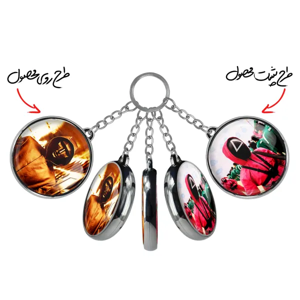 جاکلیدی دوطرفه اینهو بازی مرکب Squid Game خندالو محصولی کاربردی و جدید است که در هر دو سمت محصول، تصویری متفاوت اما از یک موضوع چاپ شده و تفاوت اصلی آن با جاکلیدی های یک طرفه در همین است که هر دو سمت پشت و روی جاکلیدی، طرحی دیدنی و جذاب دارد. همچنین رینگ بکار برده شده برای دور طرح ها آبکاری کروم درجه یک و رنگ ثابت است و برخلاف سایر محصولات مشابه، از رنگ های متفرقه و یا سفید استفاده نشده، که این مهم، زیبایی محصول نهایی را چند برابر کرده است. جاکلیدی های دوطرفه اینهو بازی مرکب Squid Game با استفاده از روکش سلفون براق ضدخش تولید شده که خاصیت ضدخش بودن آن عمر مفید استفاده از جاکلیدی ها را افزایش میدهد. چاپ جاکلیدی ها با دستگاه های استاندارد و با بهترین سطح کیفیت صورت گرفته و طرح با شفافیتی مثال زدنی و با سلفون چسبی تولید شده است که باعث شده محصول نهایی بدون شکست نور دیده شود. همچنین بسته بندی جذاب و مینیمال جاکلیدی دوطرفه اینهو بازی مرکب Squid Game ، آنها را محصولی مناسب هدیه کرده است. زنجیر و حلقه بکار برده شده در جاکلیدی خندالو از نوع حلقه ضخیم و محکم بوده و حین استفاده آسیب نمی بیند.