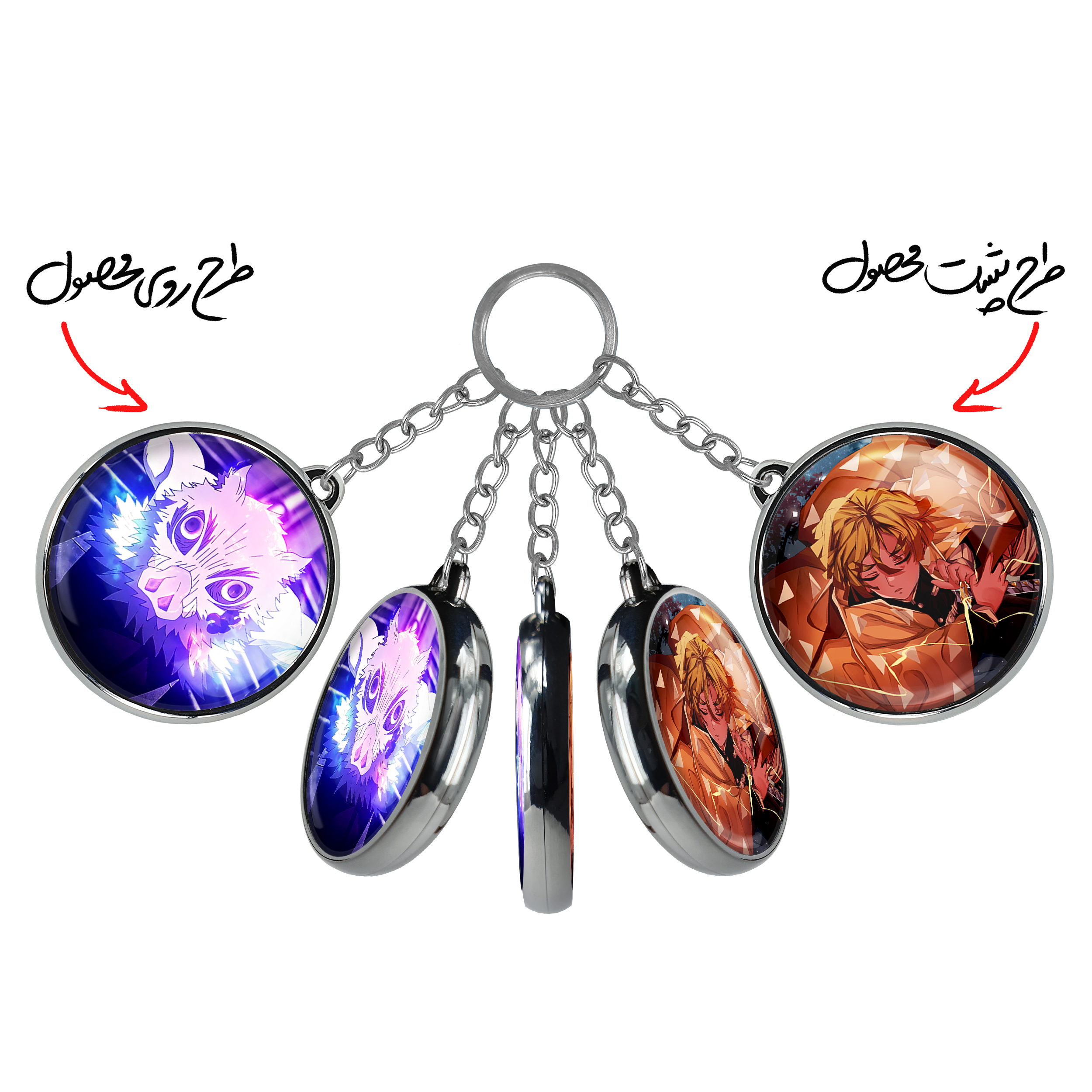 جاکلیدی دوطرفه اینوسوکه انیمه شیطان کشخندالو محصولی کاربردی و جدید است که در هر دو سمت محصول، تصویری متفاوت اما از یک موضوع چاپ شده و تفاوت اصلی آن با جاکلیدی های یک طرفه در همین است که هر دو سمت پشت و روی جاکلیدی، طرحی دیدنی و جذاب دارد. همچنین رینگ بکار برده شده برای دور طرح ها آبکاری کروم درجه یک و رنگ ثابت است و برخلاف سایر محصولات مشابه، از رنگ های متفرقه و یا سفید استفاده نشده، که این مهم، زیبایی محصول نهایی را چند برابر کرده است. جاکلیدی های دوطرفه اینوسوکه انیمه شیطان کشبا استفاده از روکش سلفون براق ضدخش تولید شده که خاصیت ضدخش بودن آن عمر مفید استفاده از جاکلیدی ها را افزایش میدهد. چاپ جاکلیدی ها با دستگاه های استاندارد و با بهترین سطح کیفیت صورت گرفته و طرح با شفافیتی مثال زدنی و با سلفون چسبی تولید شده است که باعث شده محصول نهایی بدون شکست نور دیده شود. همچنین بسته بندی جذاب و مینیمال جاکلیدی دوطرفه اینوسوکه انیمه شیطان کش، آنها را محصولی مناسب هدیه کرده است. زنجیر و حلقه بکار برده شده در جاکلیدی خندالو از نوع حلقه ضخیم و محکم بوده و حین استفاده آسیب نمی بیند.