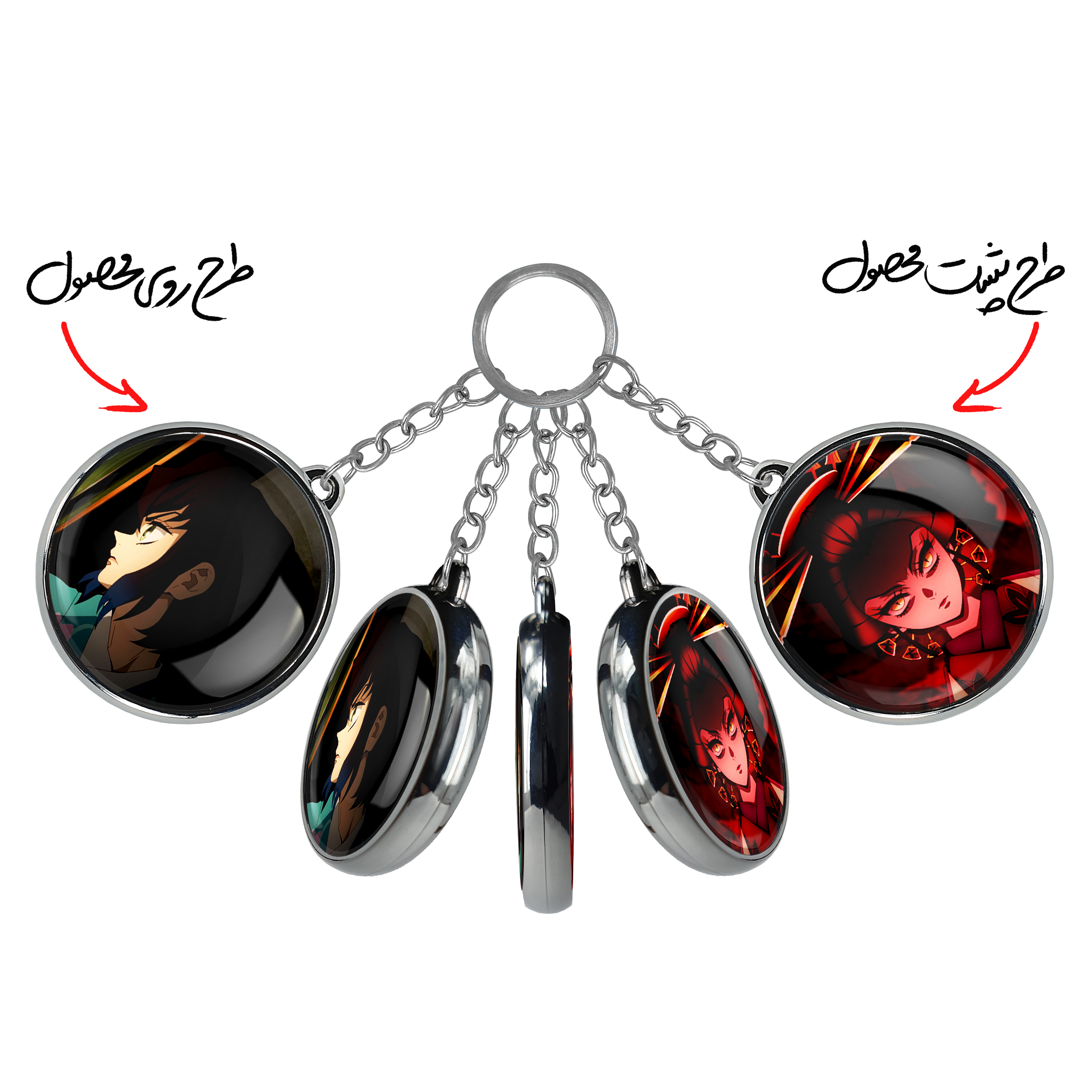 جاکلیدی دوطرفه اینوسکه انیمه شیطان کش خندالو محصولی کاربردی و جدید است که در هر دو سمت محصول، تصویری متفاوت اما از یک موضوع چاپ شده و تفاوت اصلی آن با جاکلیدی های یک طرفه در همین است که هر دو سمت پشت و روی جاکلیدی، طرحی دیدنی و جذاب دارد. همچنین رینگ بکار برده شده برای دور طرح ها آبکاری کروم درجه یک و رنگ ثابت است و برخلاف سایر محصولات مشابه، از رنگ های متفرقه و یا سفید استفاده نشده، که این مهم، زیبایی محصول نهایی را چند برابر کرده است. جاکلیدی های دوطرفه اینوسکه انیمه شیطان کش با استفاده از روکش سلفون براق ضدخش تولید شده که خاصیت ضدخش بودن آن عمر مفید استفاده از جاکلیدی ها را افزایش میدهد. چاپ جاکلیدی ها با دستگاه های استاندارد و با بهترین سطح کیفیت صورت گرفته و طرح با شفافیتی مثال زدنی و با سلفون چسبی تولید شده است که باعث شده محصول نهایی بدون شکست نور دیده شود. همچنین بسته بندی جذاب و مینیمال جاکلیدی دوطرفه اینوسکه انیمه شیطان کش ، آنها را محصولی مناسب هدیه کرده است. زنجیر و حلقه بکار برده شده در جاکلیدی خندالو از نوع حلقه ضخیم و محکم بوده و حین استفاده آسیب نمی بیند.