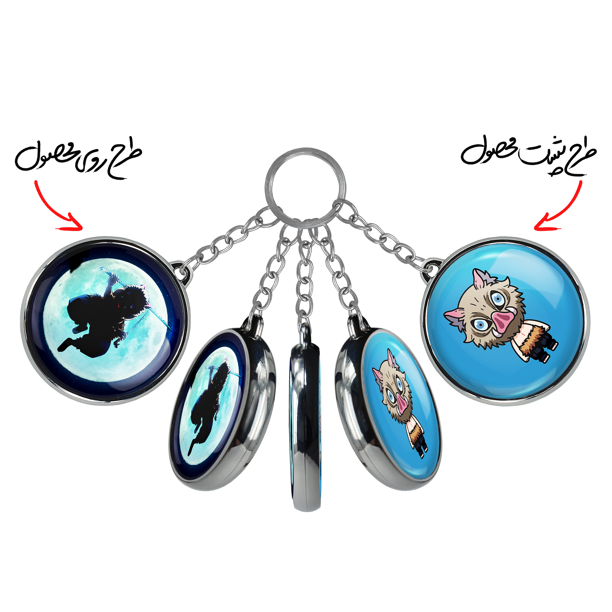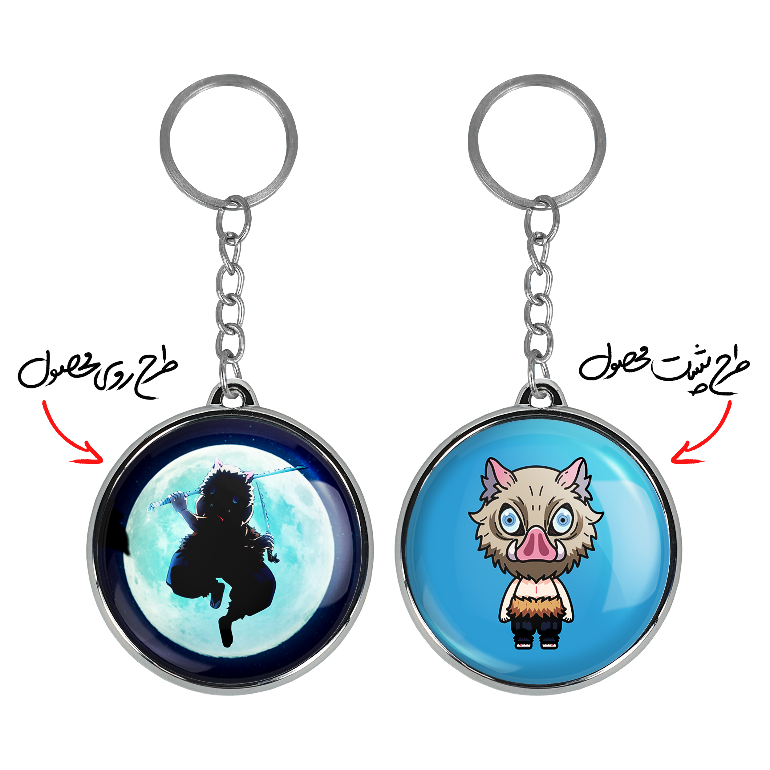 جاکلیدی دوطرفه اینوسکه انیمه شیطان کش خندالو محصولی کاربردی و جدید است که در هر دو سمت محصول، تصویری متفاوت اما از یک موضوع چاپ شده و تفاوت اصلی آن با جاکلیدی های یک طرفه در همین است که هر دو سمت پشت و روی جاکلیدی، طرحی دیدنی و جذاب دارد. همچنین رینگ بکار برده شده برای دور طرح ها آبکاری کروم درجه یک و رنگ ثابت است و برخلاف سایر محصولات مشابه، از رنگ های متفرقه و یا سفید استفاده نشده، که این مهم، زیبایی محصول نهایی را چند برابر کرده است. جاکلیدی های دوطرفه اینوسکه انیمه شیطان کش با استفاده از روکش سلفون براق ضدخش تولید شده که خاصیت ضدخش بودن آن عمر مفید استفاده از جاکلیدی ها را افزایش میدهد. چاپ جاکلیدی ها با دستگاه های استاندارد و با بهترین سطح کیفیت صورت گرفته و طرح با شفافیتی مثال زدنی و با سلفون چسبی تولید شده است که باعث شده محصول نهایی بدون شکست نور دیده شود. همچنین بسته بندی جذاب و مینیمال جاکلیدی دوطرفه اینوسکه انیمه شیطان کش ، آنها را محصولی مناسب هدیه کرده است. زنجیر و حلقه بکار برده شده در جاکلیدی خندالو از نوع حلقه ضخیم و محکم بوده و حین استفاده آسیب نمی بیند.