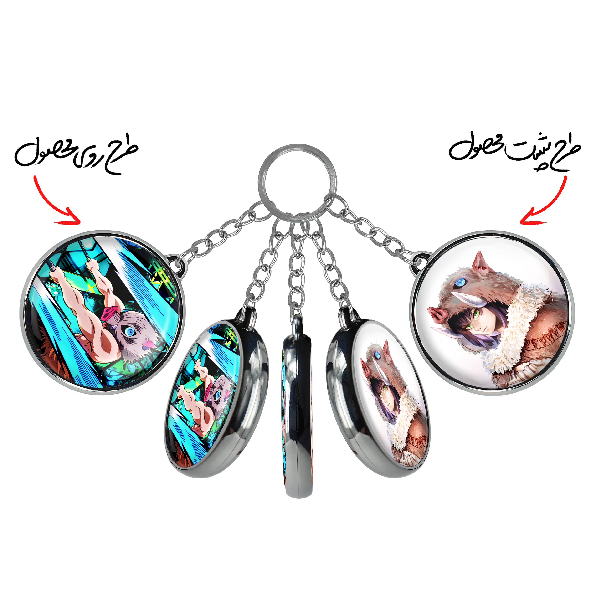 جاکلیدی دوطرفه اینوسکه انیمه شیطان کش خندالو محصولی کاربردی و جدید است که در هر دو سمت محصول، تصویری متفاوت اما از یک موضوع چاپ شده و تفاوت اصلی آن با جاکلیدی های یک طرفه در همین است که هر دو سمت پشت و روی جاکلیدی، طرحی دیدنی و جذاب دارد.