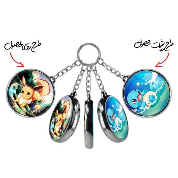 جاکلیدی دوطرفه ایو انیمه پوکمون خندالو محصولی کاربردی و جدید است که در هر دو سمت محصول، تصویری متفاوت اما از یک موضوع چاپ شده و تفاوت اصلی آن با جاکلیدی های یک طرفه در همین است که هر دو سمت پشت و روی جاکلیدی، طرحی دیدنی و جذاب دارد.