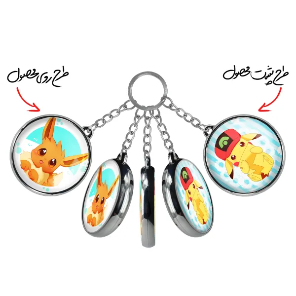 جاکلیدی دوطرفه ایو انیمه پوکمون خندالو محصولی کاربردی و جدید است که در هر دو سمت محصول، تصویری متفاوت اما از یک موضوع چاپ شده و تفاوت اصلی آن با جاکلیدی های یک طرفه در همین است که هر دو سمت پشت و روی جاکلیدی، طرحی دیدنی و جذاب دارد.
