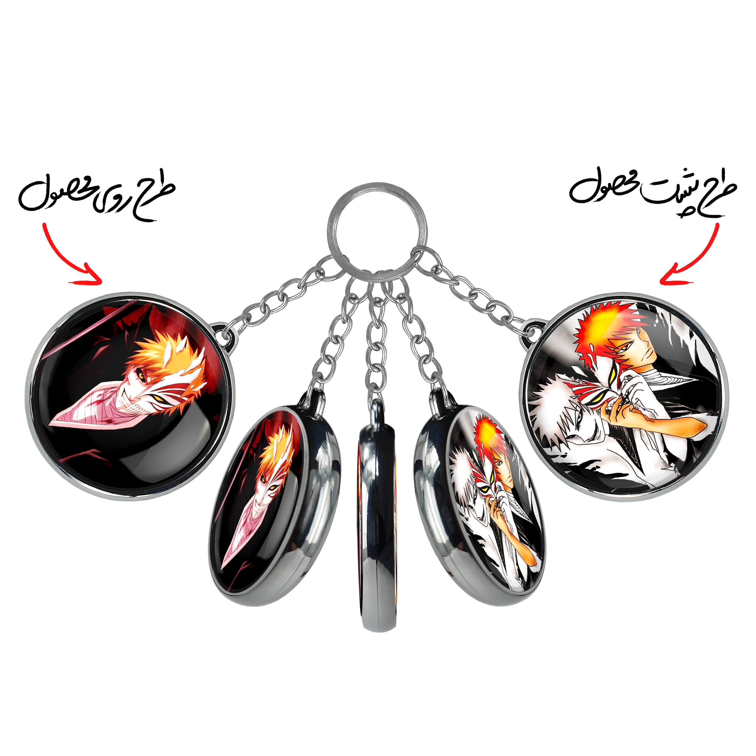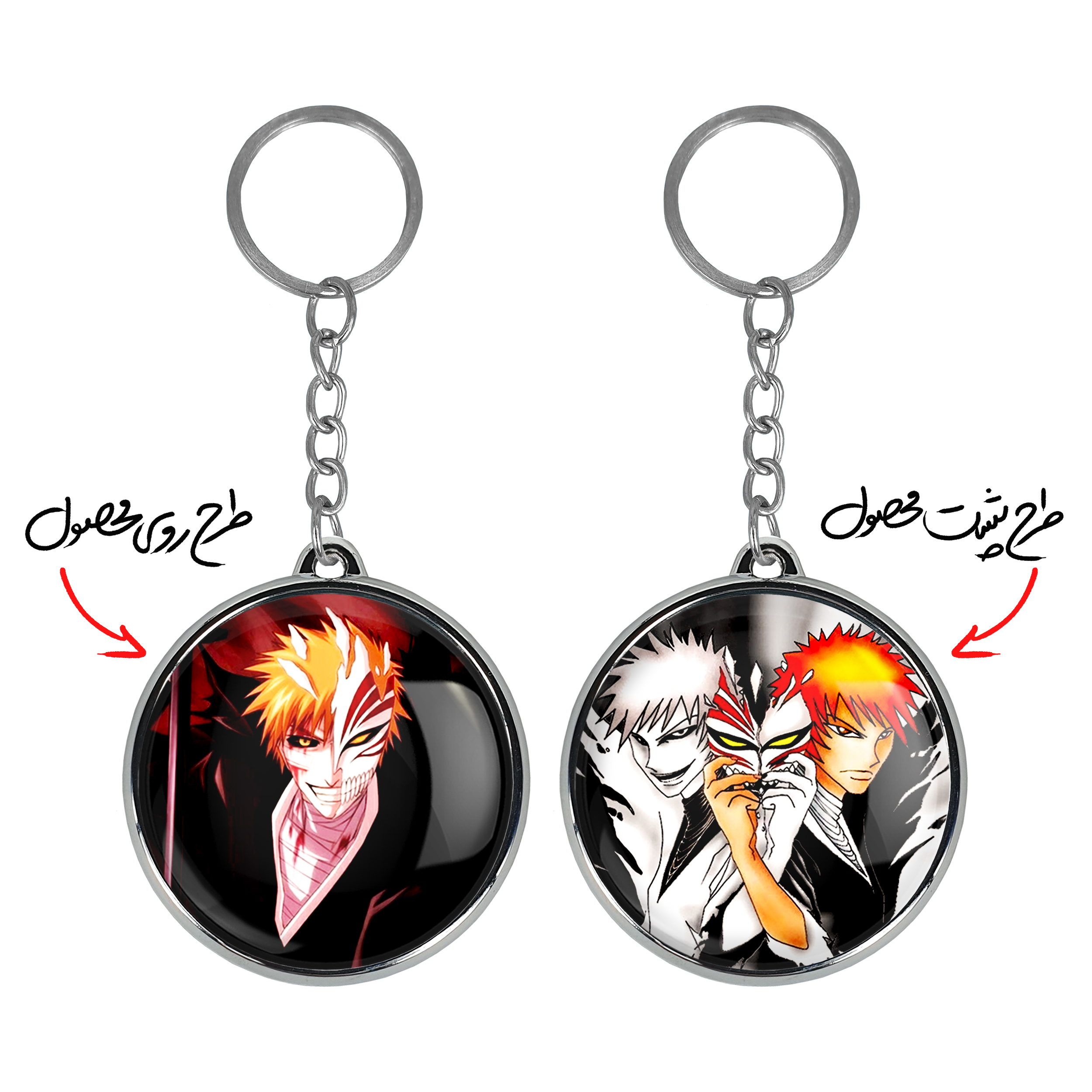 جاکلیدی دوطرفه ایچیگو کوروساکی انیمه بلیچ Bleach خندالو محصولی کاربردی و جدید است که در هر دو سمت محصول، تصویری متفاوت اما از یک موضوع چاپ شده و تفاوت اصلی آن با جاکلیدی های یک طرفه در همین است که هر دو سمت پشت و روی جاکلیدی، طرحی دیدنی و جذاب دارد. همچنین رینگ بکار برده شده برای دور طرح ها آبکاری کروم درجه یک و رنگ ثابت است و برخلاف سایر محصولات مشابه، از رنگ های متفرقه و یا سفید استفاده نشده، که این مهم، زیبایی محصول نهایی را چند برابر کرده است. جاکلیدی های دوطرفه ایچیگو کوروساکی انیمه بلیچ Bleach با استفاده از روکش سلفون براق ضدخش تولید شده که خاصیت ضدخش بودن آن عمر مفید استفاده از جاکلیدی ها را افزایش میدهد. چاپ جاکلیدی ها با دستگاه های استاندارد و با بهترین سطح کیفیت صورت گرفته و طرح با شفافیتی مثال زدنی و با سلفون چسبی تولید شده است که باعث شده محصول نهایی بدون شکست نور دیده شود. همچنین بسته بندی جذاب و مینیمال جاکلیدی دوطرفه ایچیگو کوروساکی انیمه بلیچ Bleach ، آنها را محصولی مناسب هدیه کرده است. زنجیر و حلقه بکار برده شده در جاکلیدی خندالو از نوع حلقه ضخیم و محکم بوده و حین استفاده آسیب نمی بیند.