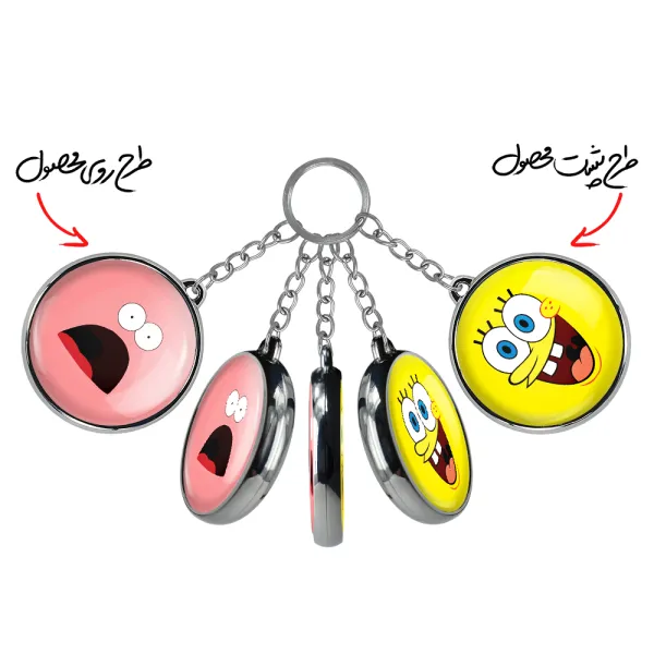 جاکلیدی دوطرفه باب اسفنجی و پاتریک خندالو محصولی کاربردی و جدید است که در هر دو سمت محصول، تصویری متفاوت اما از یک موضوع چاپ شده و تفاوت اصلی آن با جاکلیدی های یک طرفه در همین است که هر دو سمت پشت و روی جاکلیدی، طرحی دیدنی و جذاب دارد.