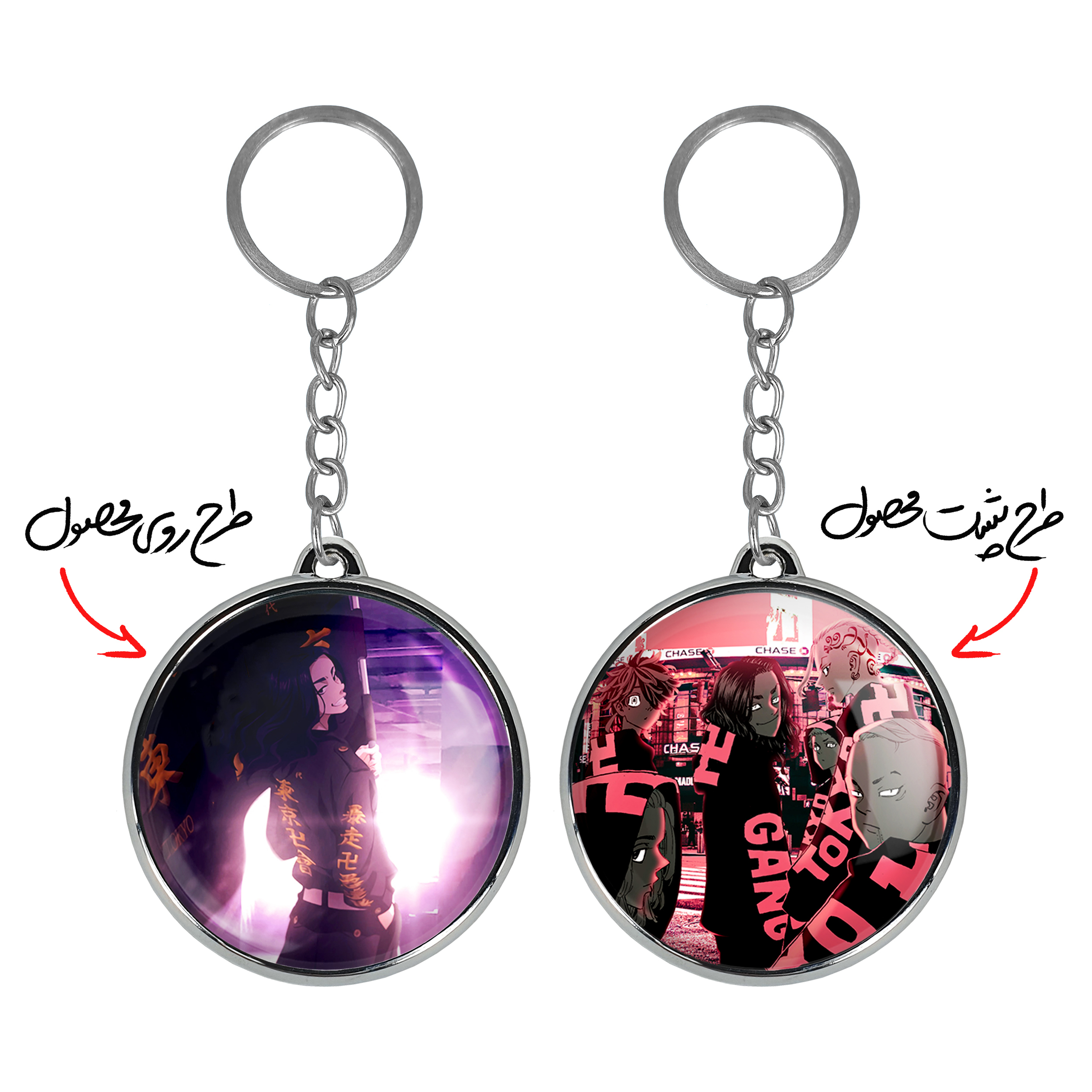 جاکلیدی دوطرفه باجی کیوسکه انیمه توکیو ریونجرز خندالو محصولی کاربردی و جدید است که در هر دو سمت محصول، تصویری متفاوت اما از یک موضوع چاپ شده و تفاوت اصلی آن با جاکلیدی های یک طرفه در همین است که هر دو سمت پشت و روی جاکلیدی، طرحی دیدنی و جذاب دارد.