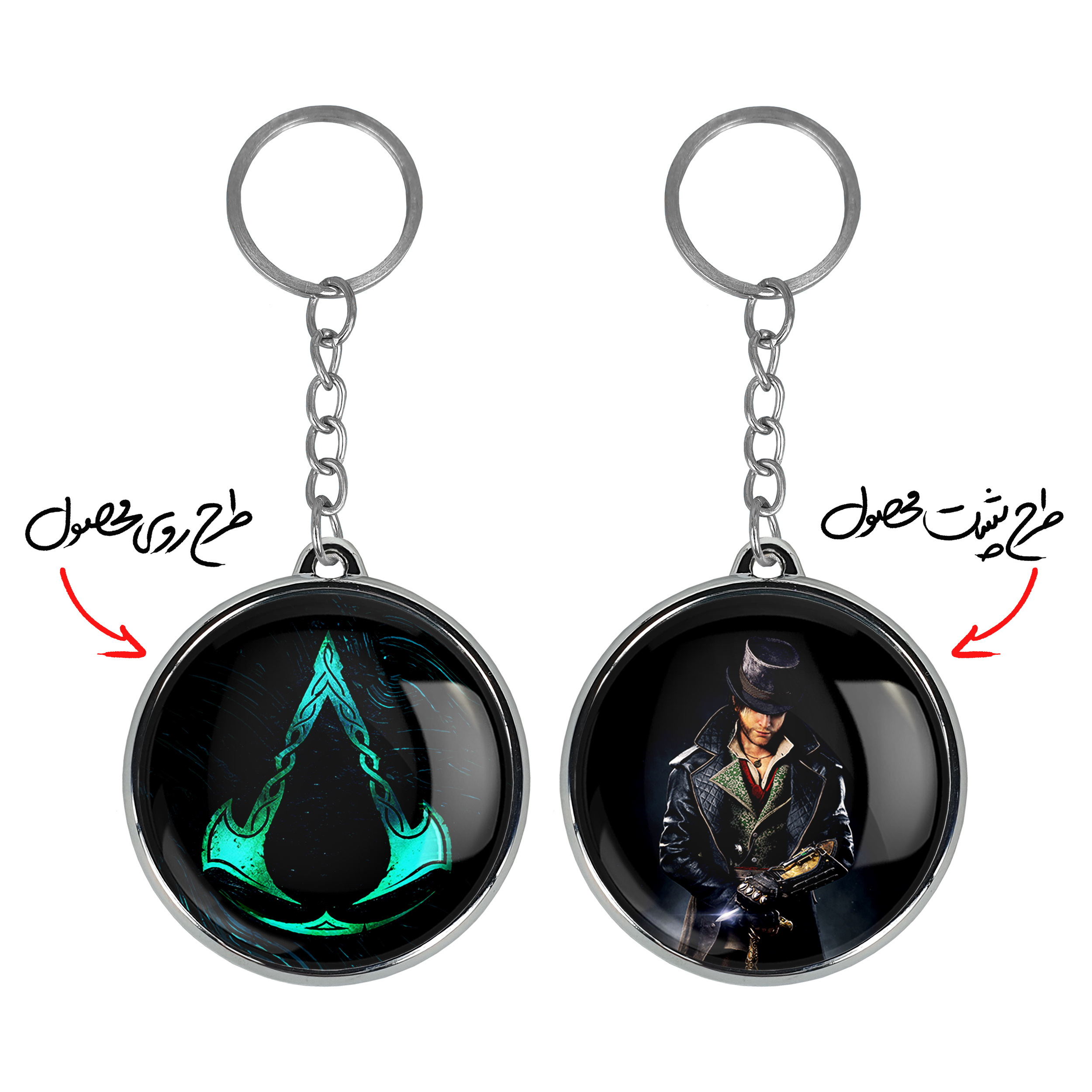 جاکلیدی دوطرفه بازی اساسینز کرید Assassin’s Creedخندالو محصولی کاربردی و جدید است که در هر دو سمت محصول، تصویری متفاوت اما از یک موضوع چاپ شده و تفاوت اصلی آن با جاکلیدی های یک طرفه در همین است که هر دو سمت پشت و روی جاکلیدی، طرحی دیدنی و جذاب دارد. همچنین رینگ بکار برده شده برای دور طرح ها آبکاری کروم درجه یک و رنگ ثابت است و برخلاف سایر محصولات مشابه، از رنگ های متفرقه و یا سفید استفاده نشده، که این مهم، زیبایی محصول نهایی را چند برابر کرده است. جاکلیدی های دوطرفه بازی اساسینز کرید Assassin’s Creedبا استفاده از روکش سلفون براق ضدخش تولید شده که خاصیت ضدخش بودن آن عمر مفید استفاده از جاکلیدی ها را افزایش میدهد. چاپ جاکلیدی ها با دستگاه های استاندارد و با بهترین سطح کیفیت صورت گرفته و طرح با شفافیتی مثال زدنی و با سلفون چسبی تولید شده است که باعث شده محصول نهایی بدون شکست نور دیده شود. همچنین بسته بندی جذاب و مینیمال جاکلیدی دوطرفه بازی اساسینز کرید Assassin’s Creed، آنها را محصولی مناسب هدیه کرده است. زنجیر و حلقه بکار برده شده در جاکلیدی خندالو از نوع حلقه ضخیم و محکم بوده و حین استفاده آسیب نمی بیند.
