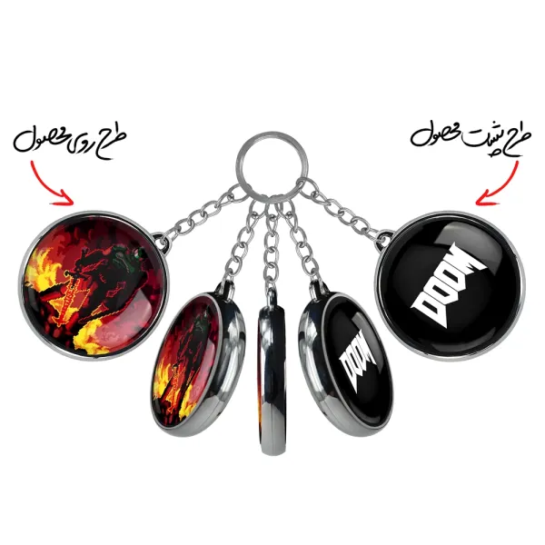 جاکلیدی دوطرفه بازی رستاخیز (Doom) خندالو محصولی کاربردی و جدید است که در هر دو سمت محصول، تصویری متفاوت اما از یک موضوع چاپ شده و تفاوت اصلی آن با جاکلیدی های یک طرفه در همین است که هر دو سمت پشت و روی جاکلیدی، طرحی دیدنی و جذاب دارد. همچنین رینگ بکار برده شده برای دور طرح ها آبکاری کروم درجه یک و رنگ ثابت است و برخلاف سایر محصولات مشابه، از رنگ های متفرقه و یا سفید استفاده نشده، که این مهم، زیبایی محصول نهایی را چند برابر کرده است. جاکلیدی های دوطرفه بازی رستاخیز (Doom) با استفاده از روکش سلفون براق ضدخش تولید شده که خاصیت ضدخش بودن آن عمر مفید استفاده از جاکلیدی ها را افزایش میدهد. چاپ جاکلیدی ها با دستگاه های استاندارد و با بهترین سطح کیفیت صورت گرفته و طرح با شفافیتی مثال زدنی و با سلفون چسبی تولید شده است که باعث شده محصول نهایی بدون شکست نور دیده شود. همچنین بسته بندی جذاب و مینیمال جاکلیدی دوطرفه بازی رستاخیز (Doom)، آنها را محصولی مناسب هدیه کرده است. زنجیر و حلقه بکار برده شده در جاکلیدی خندالو از نوع حلقه ضخیم و محکم بوده و حین استفاده آسیب نمی بیند.