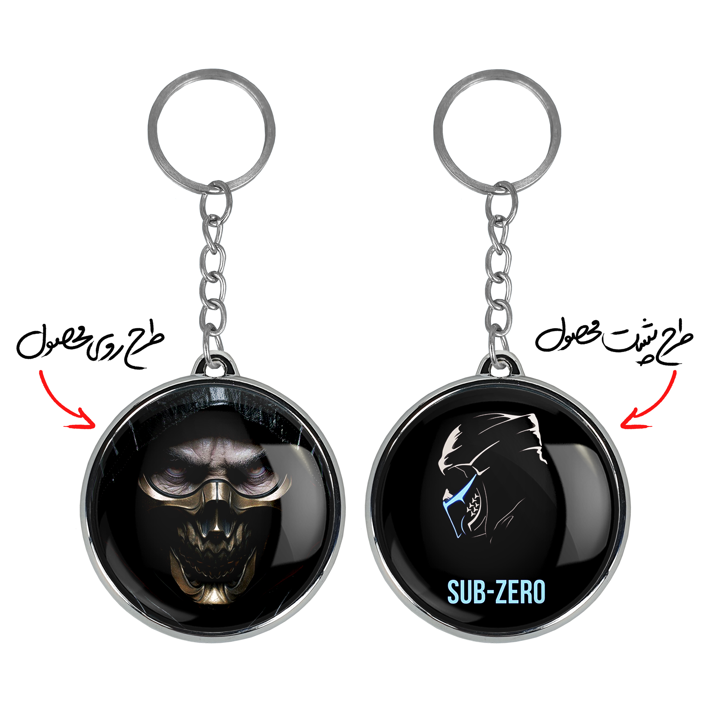 جاکلیدی دوطرفه بازی مورتال کمبت Mortal Kombatخندالو محصولی کاربردی و جدید است که در هر دو سمت محصول، تصویری متفاوت اما از یک موضوع چاپ شده و تفاوت اصلی آن با جاکلیدی های یک طرفه در همین است که هر دو سمت پشت و روی جاکلیدی، طرحی دیدنی و جذاب دارد. همچنین رینگ بکار برده شده برای دور طرح ها آبکاری کروم درجه یک و رنگ ثابت است و برخلاف سایر محصولات مشابه، از رنگ های متفرقه و یا سفید استفاده نشده، که این مهم، زیبایی محصول نهایی را چند برابر کرده است. جاکلیدی های دوطرفه بازی مورتال کمبت Mortal Kombatبا استفاده از روکش سلفون براق ضدخش تولید شده که خاصیت ضدخش بودن آن عمر مفید استفاده از جاکلیدی ها را افزایش میدهد. چاپ جاکلیدی ها با دستگاه های استاندارد و با بهترین سطح کیفیت صورت گرفته و طرح با شفافیتی مثال زدنی و با سلفون چسبی تولید شده است که باعث شده محصول نهایی بدون شکست نور دیده شود. همچنین بسته بندی جذاب و مینیمال جاکلیدی دوطرفه بازی مورتال کمبت Mortal Kombat، آنها را محصولی مناسب هدیه کرده است. زنجیر و حلقه بکار برده شده در جاکلیدی خندالو از نوع حلقه ضخیم و محکم بوده و حین استفاده آسیب نمی بیند.