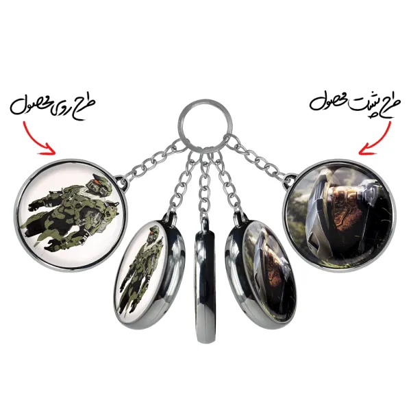 جاکلیدی دوطرفه بازی هیلو (Halo) خندالو محصولی کاربردی و جدید است که در هر دو سمت محصول، تصویری متفاوت اما از یک موضوع چاپ شده و تفاوت اصلی آن با جاکلیدی های یک طرفه در همین است که هر دو سمت پشت و روی جاکلیدی، طرحی دیدنی و جذاب دارد.