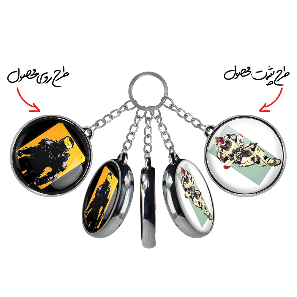 جاکلیدی دوطرفه بازی هیلو (Halo) خندالو محصولی کاربردی و جدید است که در هر دو سمت محصول، تصویری متفاوت اما از یک موضوع چاپ شده و تفاوت اصلی آن با جاکلیدی های یک طرفه در همین است که هر دو سمت پشت و روی جاکلیدی، طرحی دیدنی و جذاب دارد. همچنین رینگ بکار برده شده برای دور طرح ها آبکاری کروم درجه یک و رنگ ثابت است و برخلاف سایر محصولات مشابه، از رنگ های متفرقه و یا سفید استفاده نشده، که این مهم، زیبایی محصول نهایی را چند برابر کرده است. جاکلیدی های دوطرفه بازی هیلو (Halo) با استفاده از روکش سلفون براق ضدخش تولید شده که خاصیت ضدخش بودن آن عمر مفید استفاده از جاکلیدی ها را افزایش میدهد. چاپ جاکلیدی ها با دستگاه های استاندارد و با بهترین سطح کیفیت صورت گرفته و طرح با شفافیتی مثال زدنی و با سلفون چسبی تولید شده است که باعث شده محصول نهایی بدون شکست نور دیده شود. همچنین بسته بندی جذاب و مینیمال جاکلیدی دوطرفه بازی هیلو (Halo)، آنها را محصولی مناسب هدیه کرده است. زنجیر و حلقه بکار برده شده در جاکلیدی خندالو از نوع حلقه ضخیم و محکم بوده و حین استفاده آسیب نمی بیند.