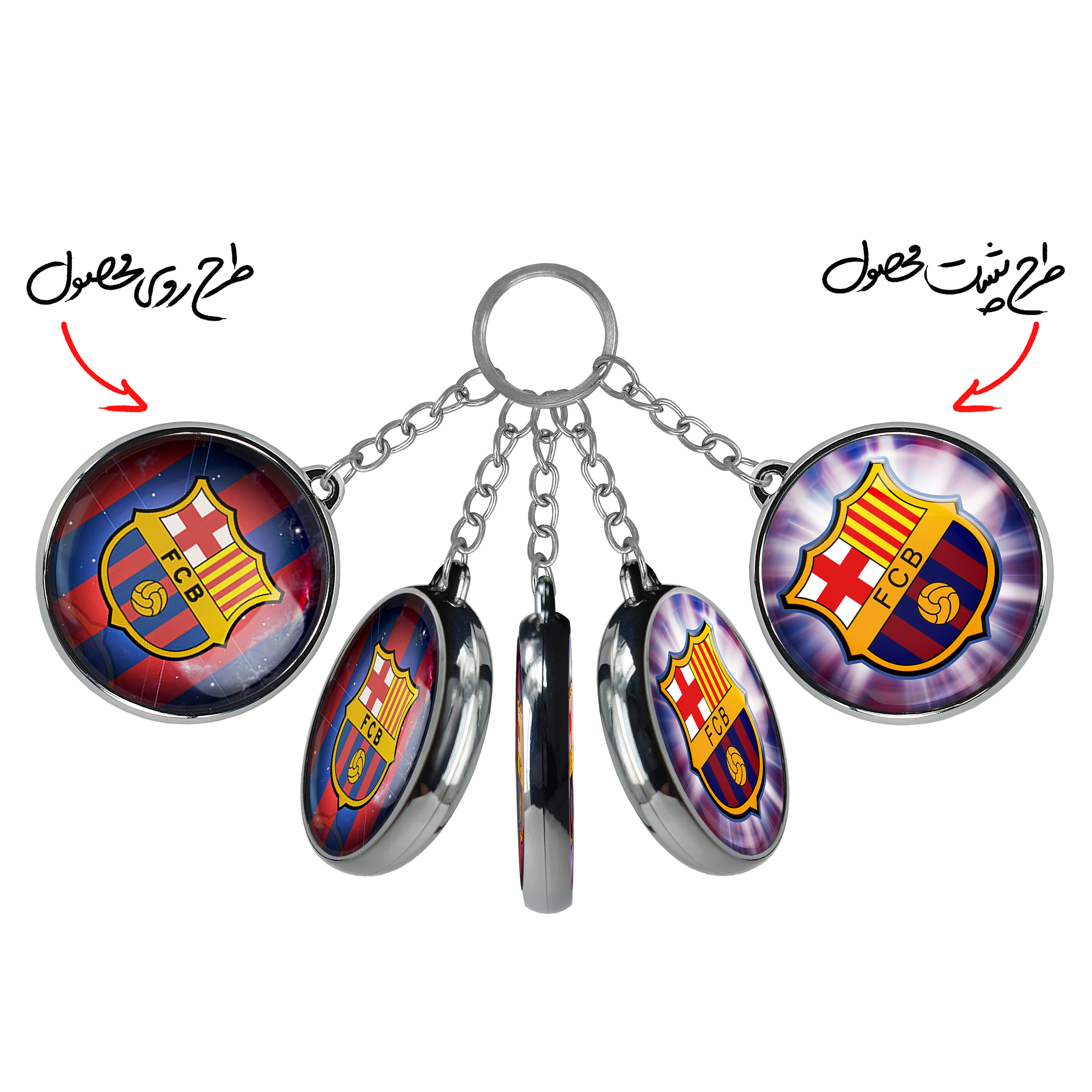 جاکلیدی دوطرفه باشگاه بارسلوناخندالو محصولی کاربردی و جدید است که در هر دو سمت محصول، تصویری متفاوت اما از یک موضوع چاپ شده و تفاوت اصلی آن با جاکلیدی های یک طرفه در همین است که هر دو سمت پشت و روی جاکلیدی، طرحی دیدنی و جذاب دارد.