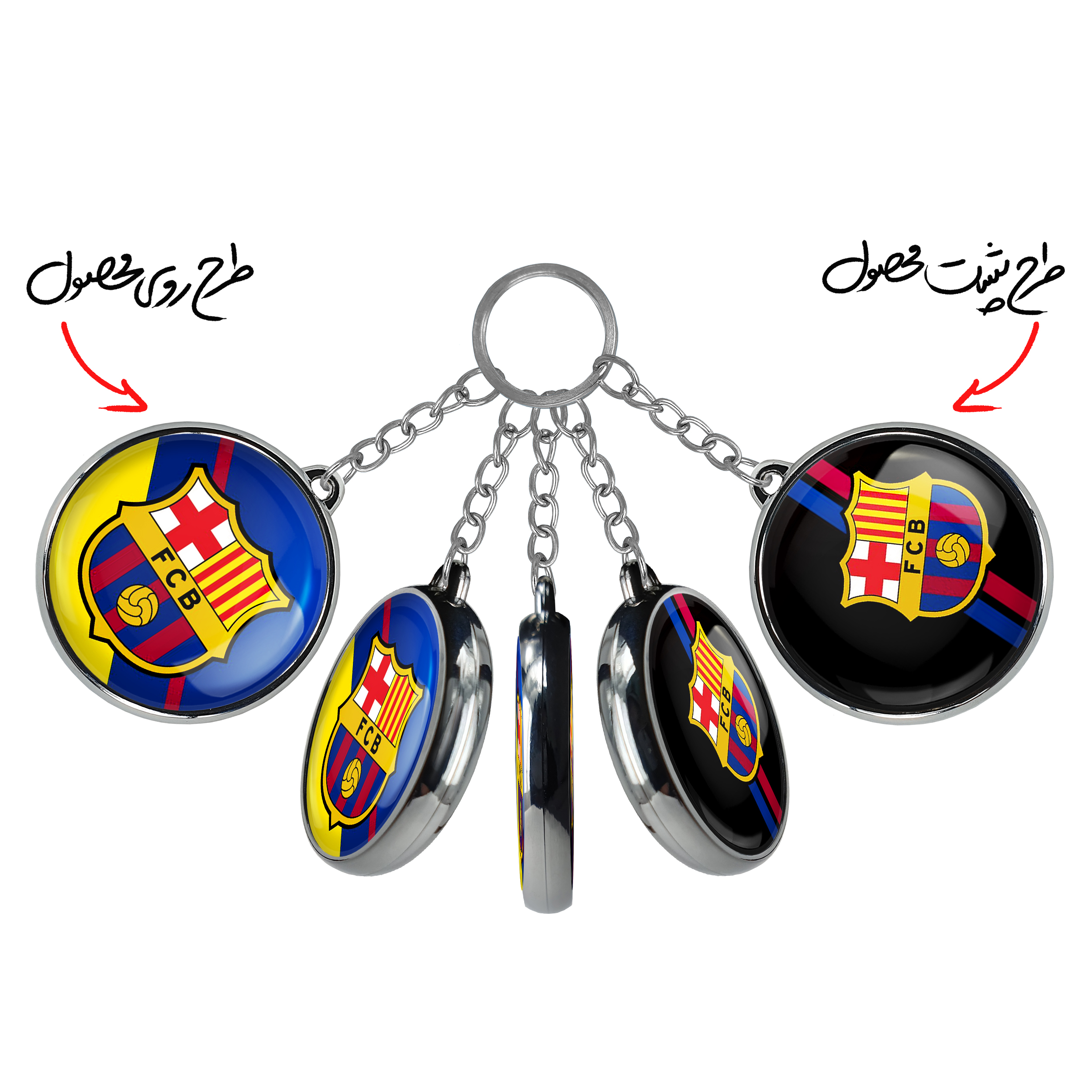 جاکلیدی دوطرفه باشگاه بارسلوناخندالو محصولی کاربردی و جدید است که در هر دو سمت محصول، تصویری متفاوت اما از یک موضوع چاپ شده و تفاوت اصلی آن با جاکلیدی های یک طرفه در همین است که هر دو سمت پشت و روی جاکلیدی، طرحی دیدنی و جذاب دارد.