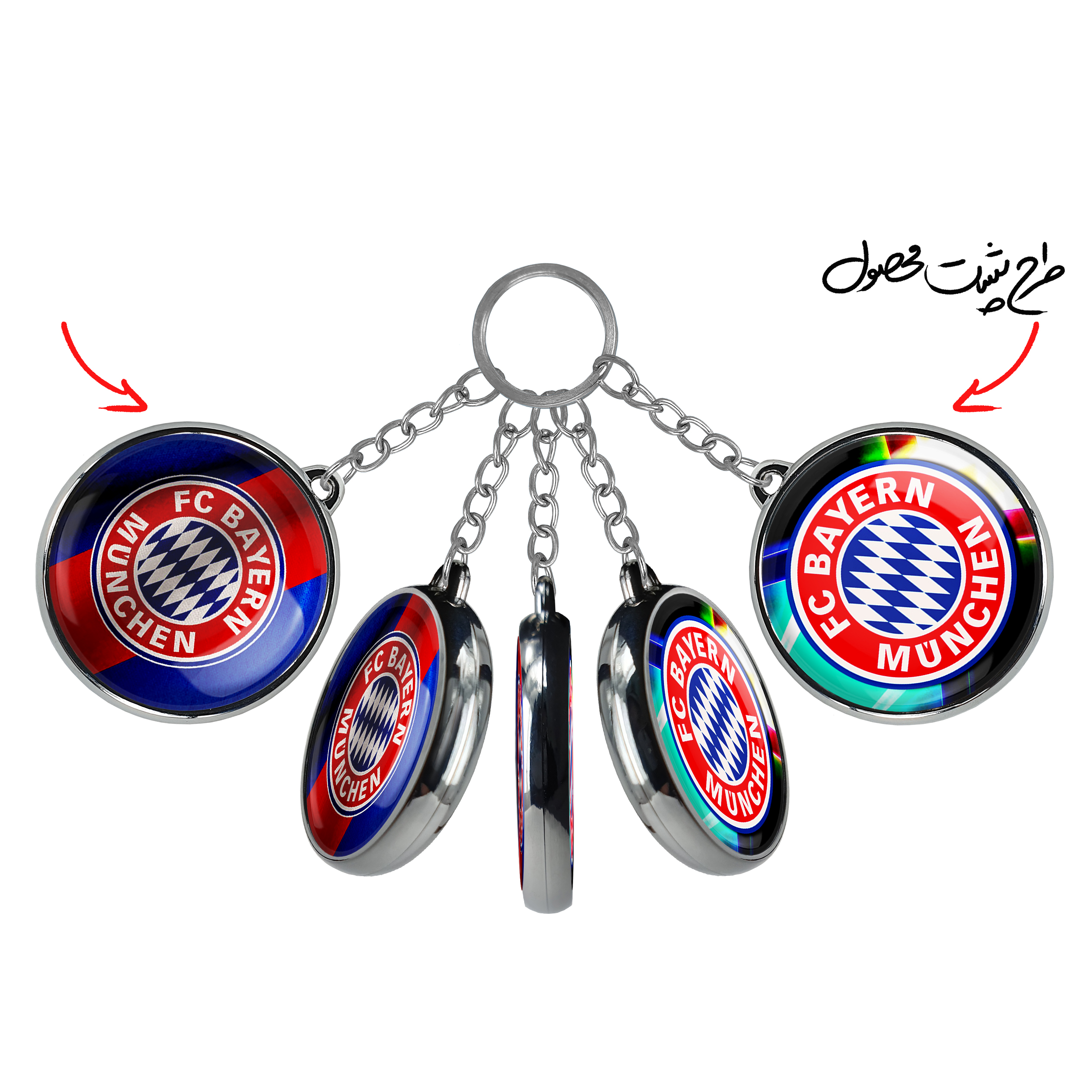 جاکلیدی دوطرفه باشگاه بایرن مونیخخندالو محصولی کاربردی و جدید است که در هر دو سمت محصول، تصویری متفاوت اما از یک موضوع چاپ شده و تفاوت اصلی آن با جاکلیدی های یک طرفه در همین است که هر دو سمت پشت و روی جاکلیدی، طرحی دیدنی و جذاب دارد.